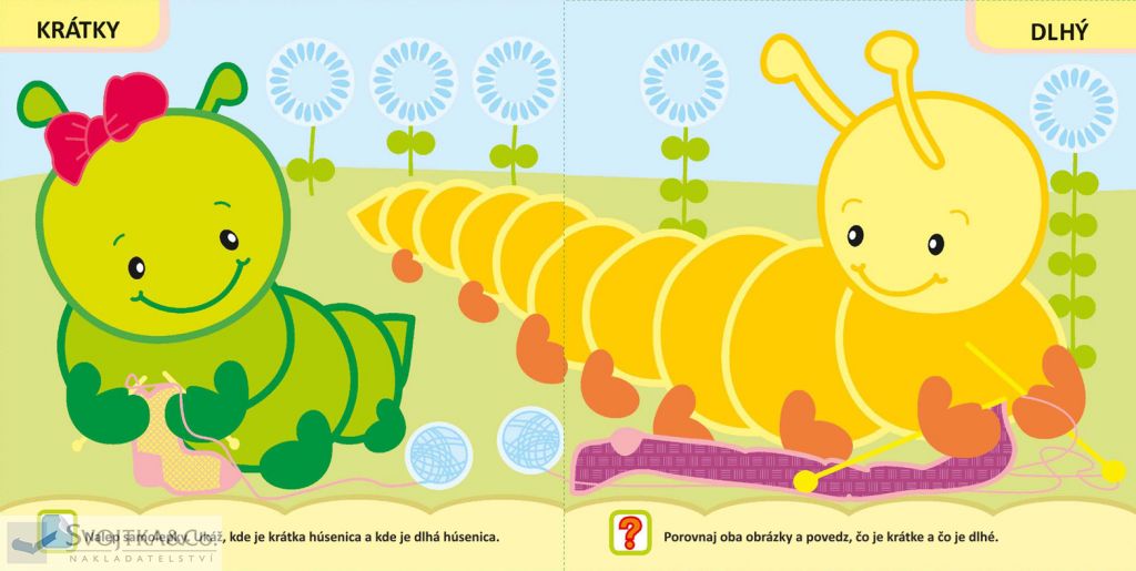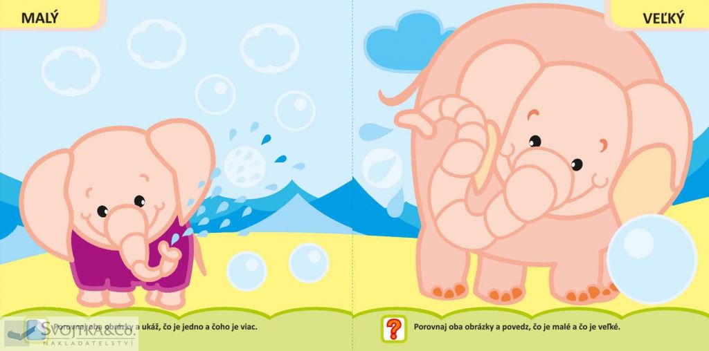 Ktorý slon je malý a ktorý veľký? Ukáž, ktorý košík je plný a ktorý prázdny. Ktorá húsenica je krátk...zobrazit více