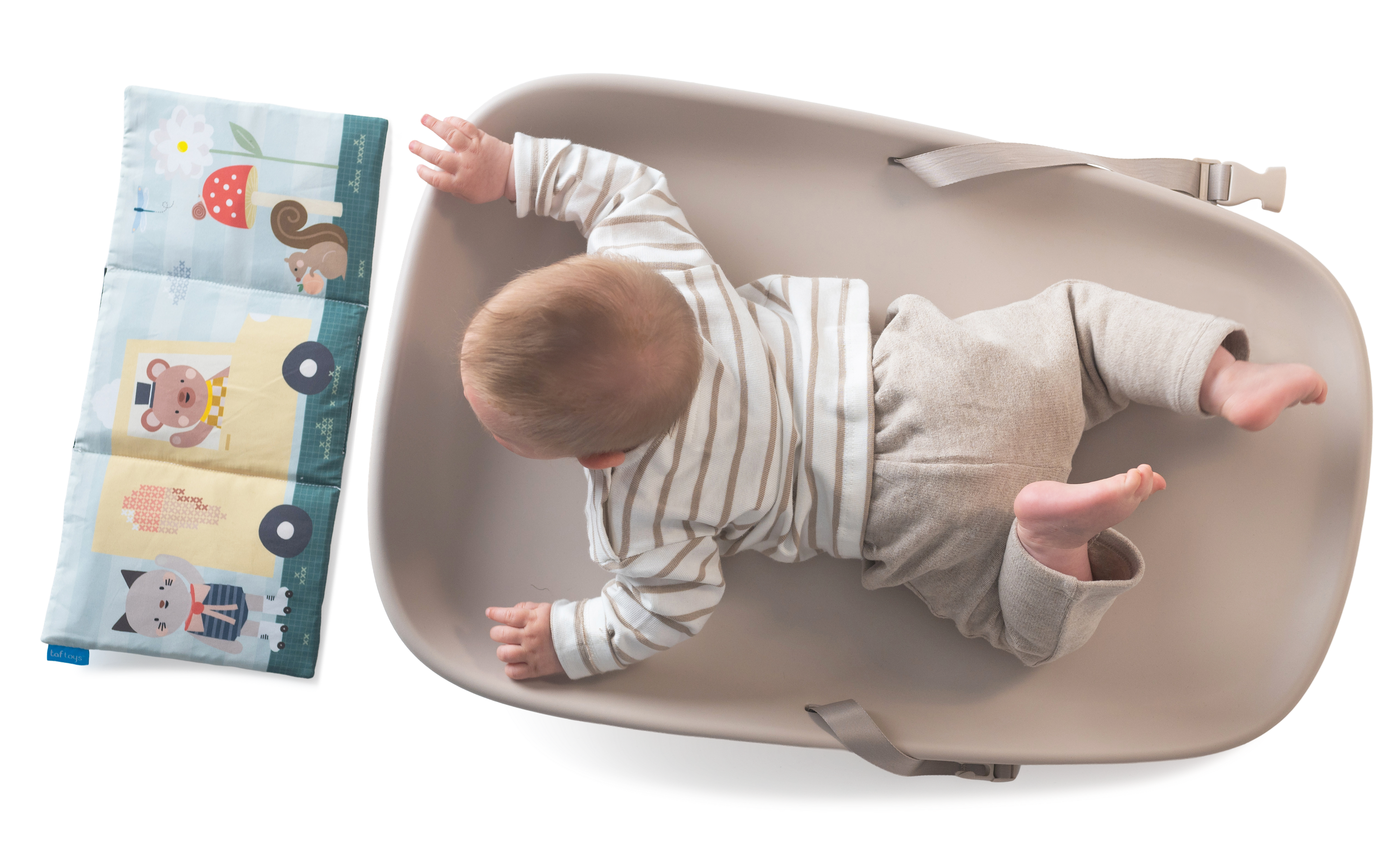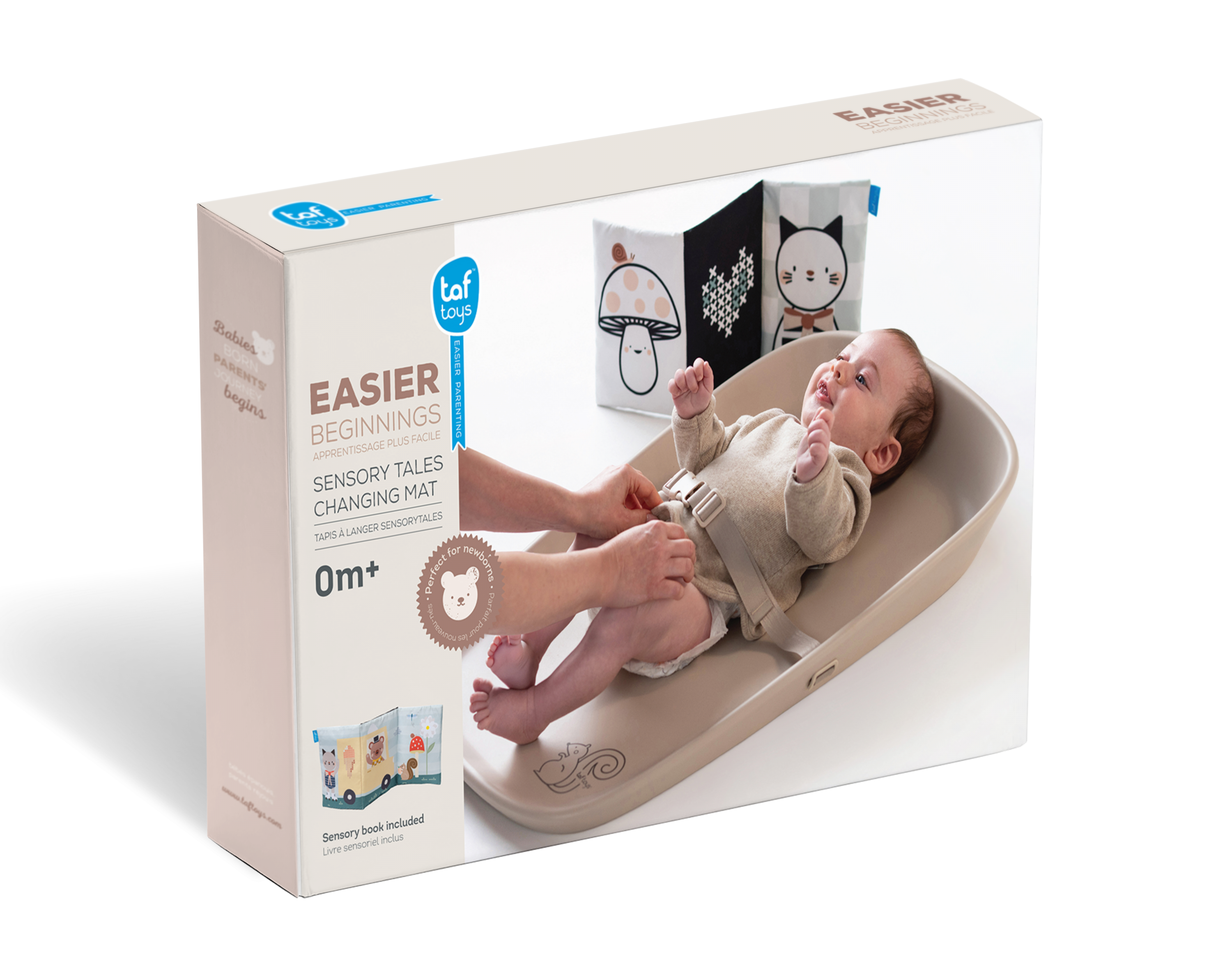 Přebalovací podložka Taf Toys mění každé přebalování v příjemný okamžik pro miminko i pro rodiče. Podložka je vhodná nejen na přebalování, ale také pro hru na bříšku nebo jako hrací podložka na cestách. Součástí balení je textilní knížka pro zabavení miminka během přebalování i pro hru na bříšku.