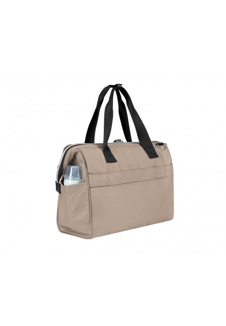 Uvnitř tašky najdete množství kapes a přihrádek, voděodolnou kapsu pro uložení vlhkých předmětů a dvě termoizolační kapsy pro láhve. Široký způsob otevírání tašky usnadňuje orientaci v uloženém obsahu. Na vnější straně najdete kapsy s uzavíráním na zip i kapsu pro uložení láhve. Součástí tašky je i odnímatelné pouzdro na drobnosti a přebalovací podložka.