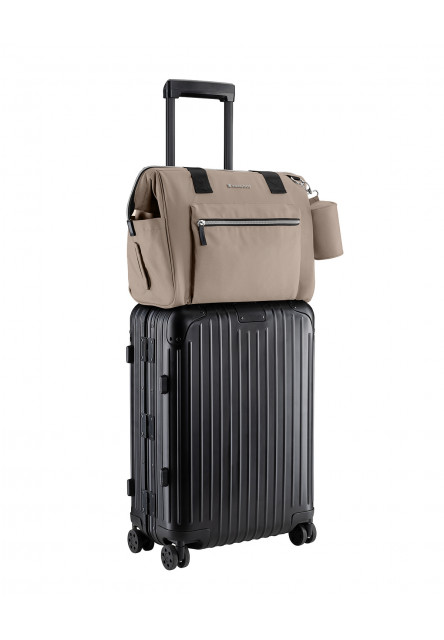 Držadla umožňují pohodlné nošení v ruce, součástí tašky je i ramenní popruh pro nošení přes rameno. Úchyty na zadní straně umožňují připevnění k rukojeti kufru.