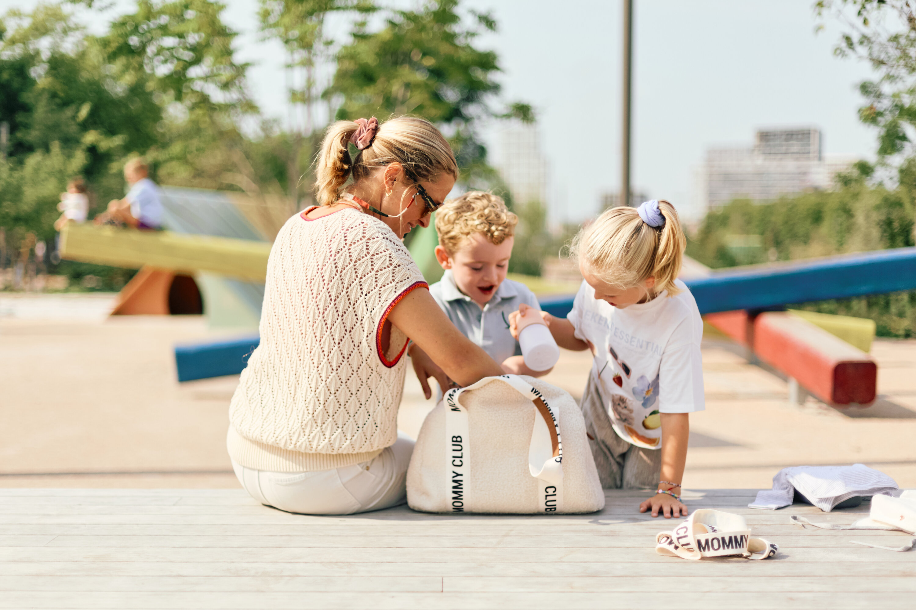 Stylová přebalovací taška Childhome Mommy Club je perfektní pro snadné a přehledné uložení všeho potřebného na procházky a výlety s miminkem. Vnitřní uspořádání nabízí termoizolační kapsu na láhev a elastické kapsy na uložení vlhčených ubrousků, plen, náhradního oblečení apod. Součástí je i přebalovací podložka.