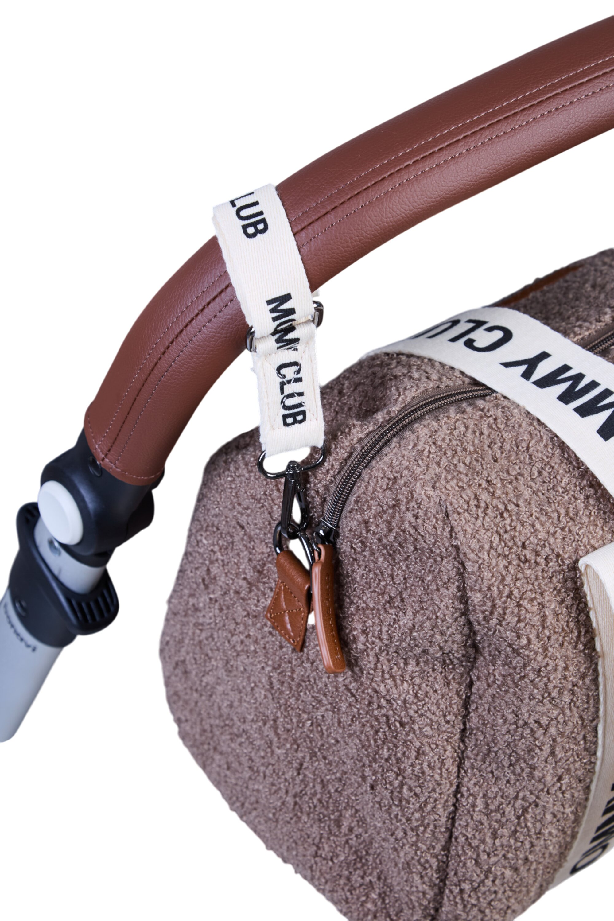 Přebalovací taška s uzavíráním na zip je vybavena držadly pro nošení v ruce, popruhem pro nošení přes rameno i úchyty pro zavěšení na kočárek.