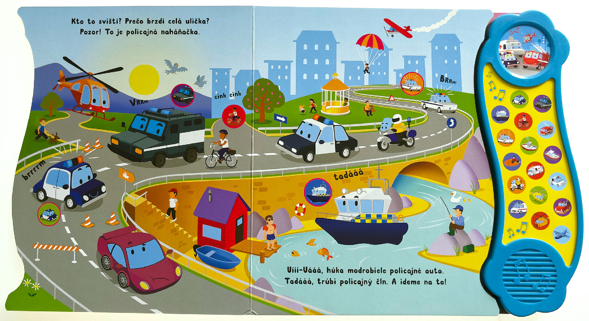 Uííí-Uááá, húka modrobiele policajné auto. Tadááá, trúbi policajný čln. Húúú, húka sanitka – táto in...zobrazit více
