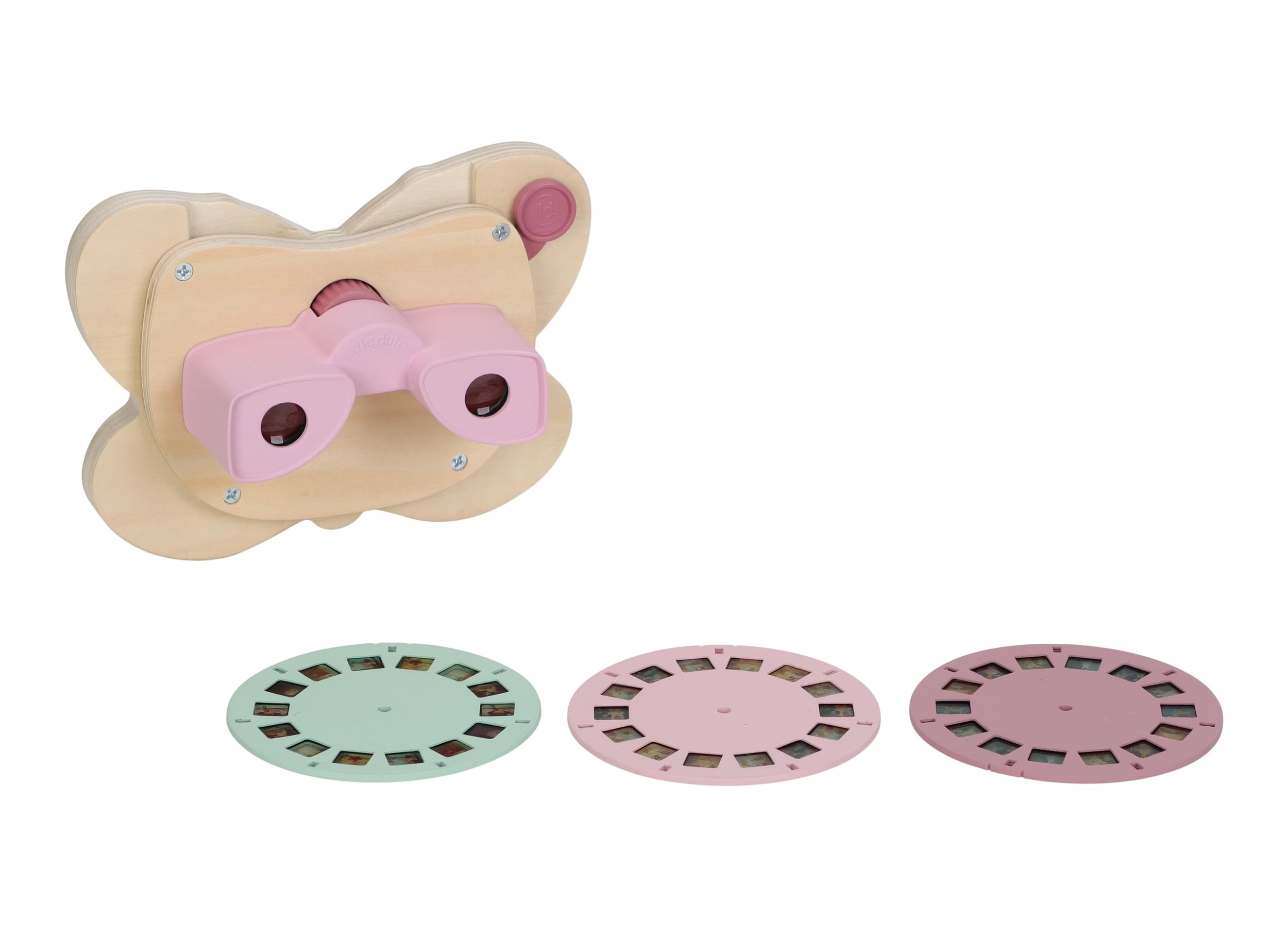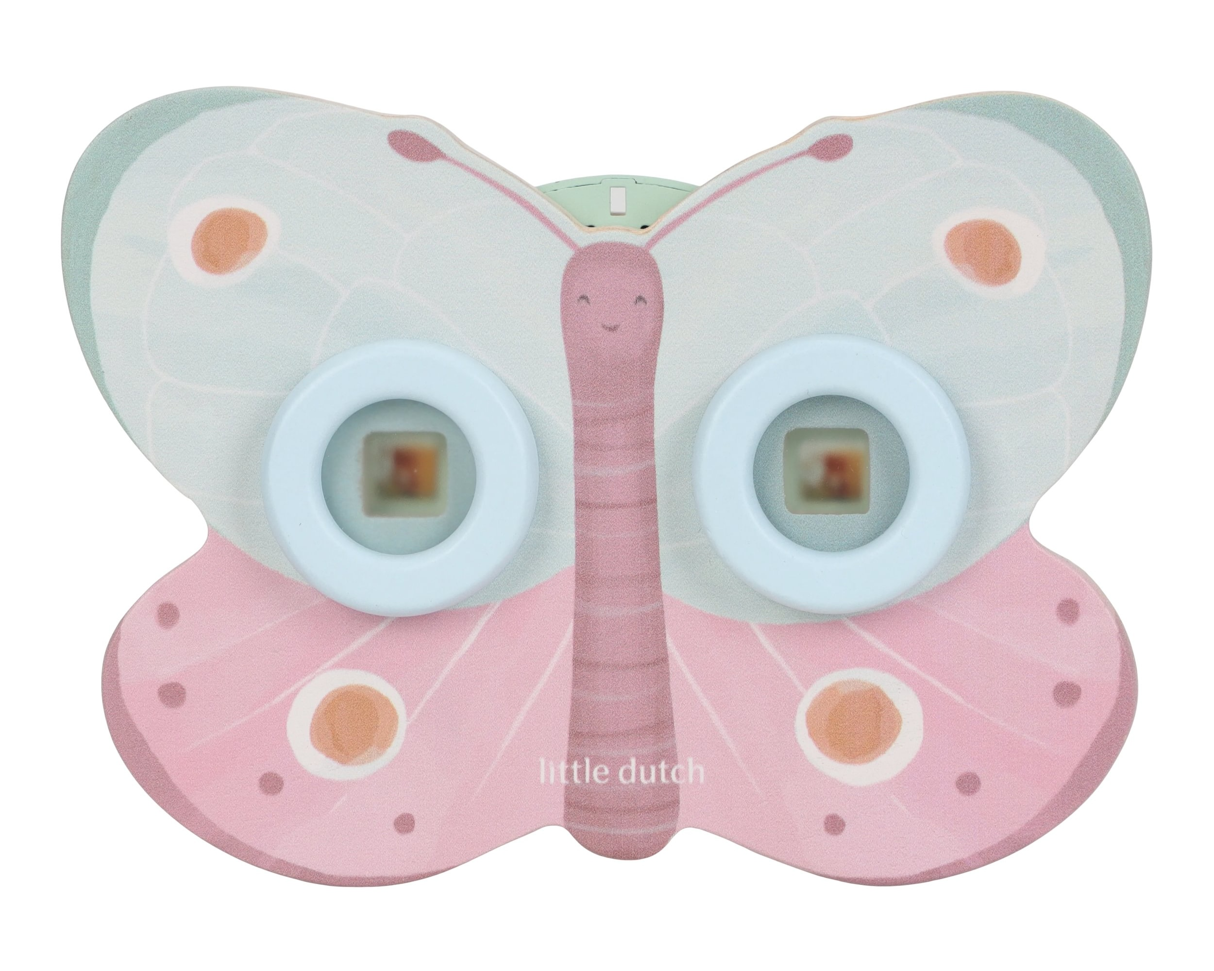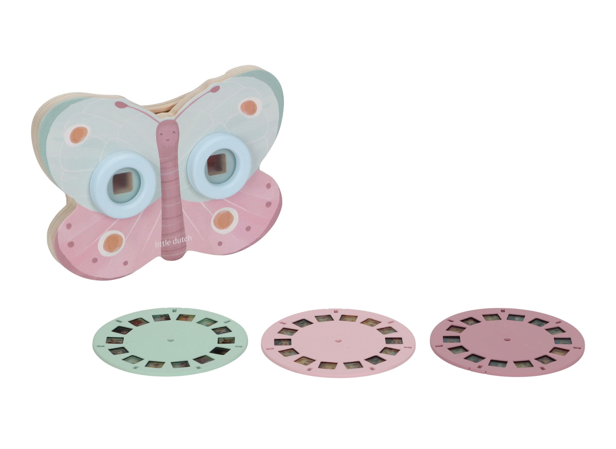 Prohlížeč příběhů Little Dutch je kouzelná hračka, která děti vtáhne do světa vyprávění a fantazie. Má podobu něžného motýla a funguje jednoduše: stačí otáčet kotoučky a před očima se odvíjejí obrázkové příběhy z lesa. Součástí jsou tři výměnné kotouče s příběhy ze života na zahradě. Ideální pro klidné chvíle před spaním i společné vyprávění s rodiči. Hračka podporuje rozvoj řeči, představivost a schopnost tvořit vlastní příběhy.