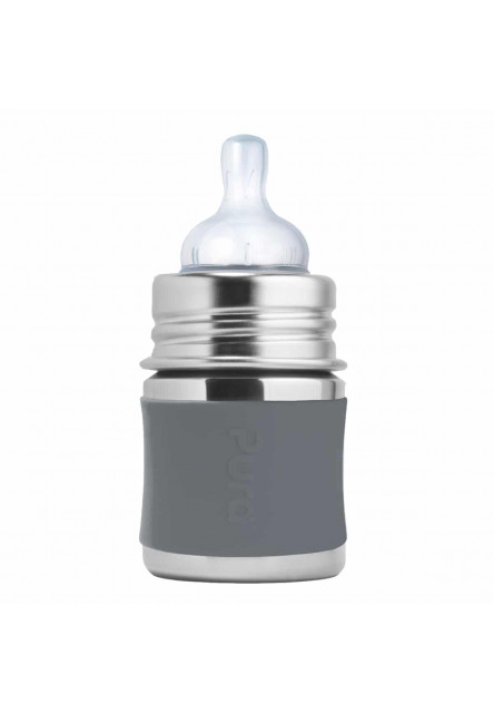 Balenie obsahuje: nerezovú fľašu 150ml, nerezovú objímku, antikolikový cumlík Pura Natural Vent Nipple™ (pomalý prietok), silikónový návlek, silikónový vrchnák