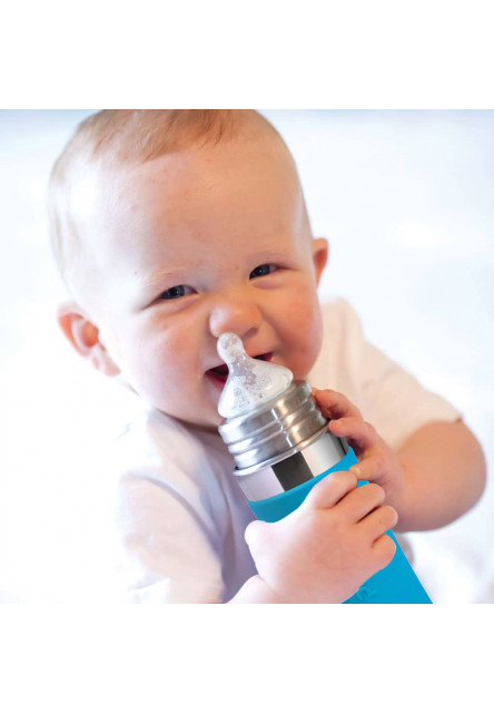 Balenie obsahuje: nerezovú fľašu 325ml, nerezovú objímku, antikolikový cumlík Pura Natural Vent Nipple (stredný prietok), silikónový návlek, silikónový vrchnák