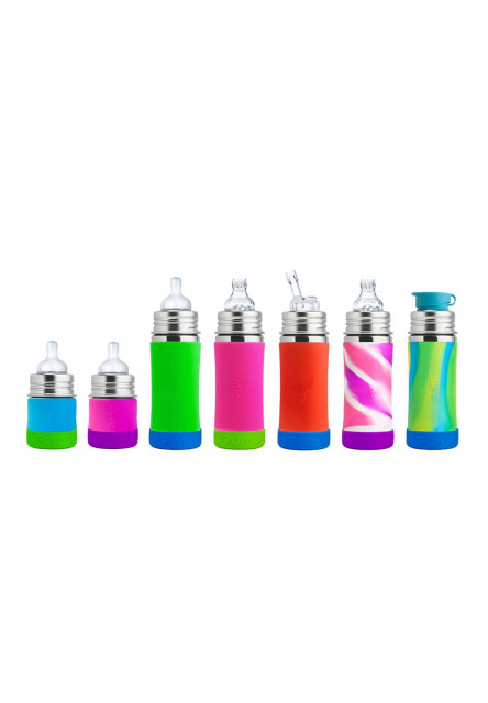 Nerezové láhve a termo láhve vyrobeny 100% bez plastových částí. Nejbezpečnější, nejuniverzálnější, nerozbitné ekologické láhve oceněné více než 35 oceněními. Jednoduchou výměnou silikonových uzávěrů se láhev mění z kojenecké láhve na láhev s náustkem, brčkem nebo sportovním uzávěrem či na skleničku na pokrmy. One Life… One Bottle™