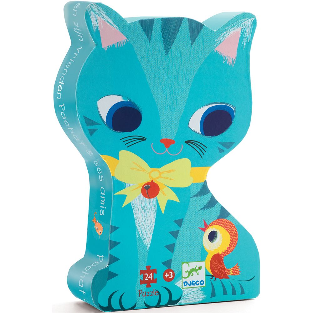 Puzzle pre predškolákov. Zobrazuje kocúrika Pašu vo veselej spoločnosti ďalších mačiek.