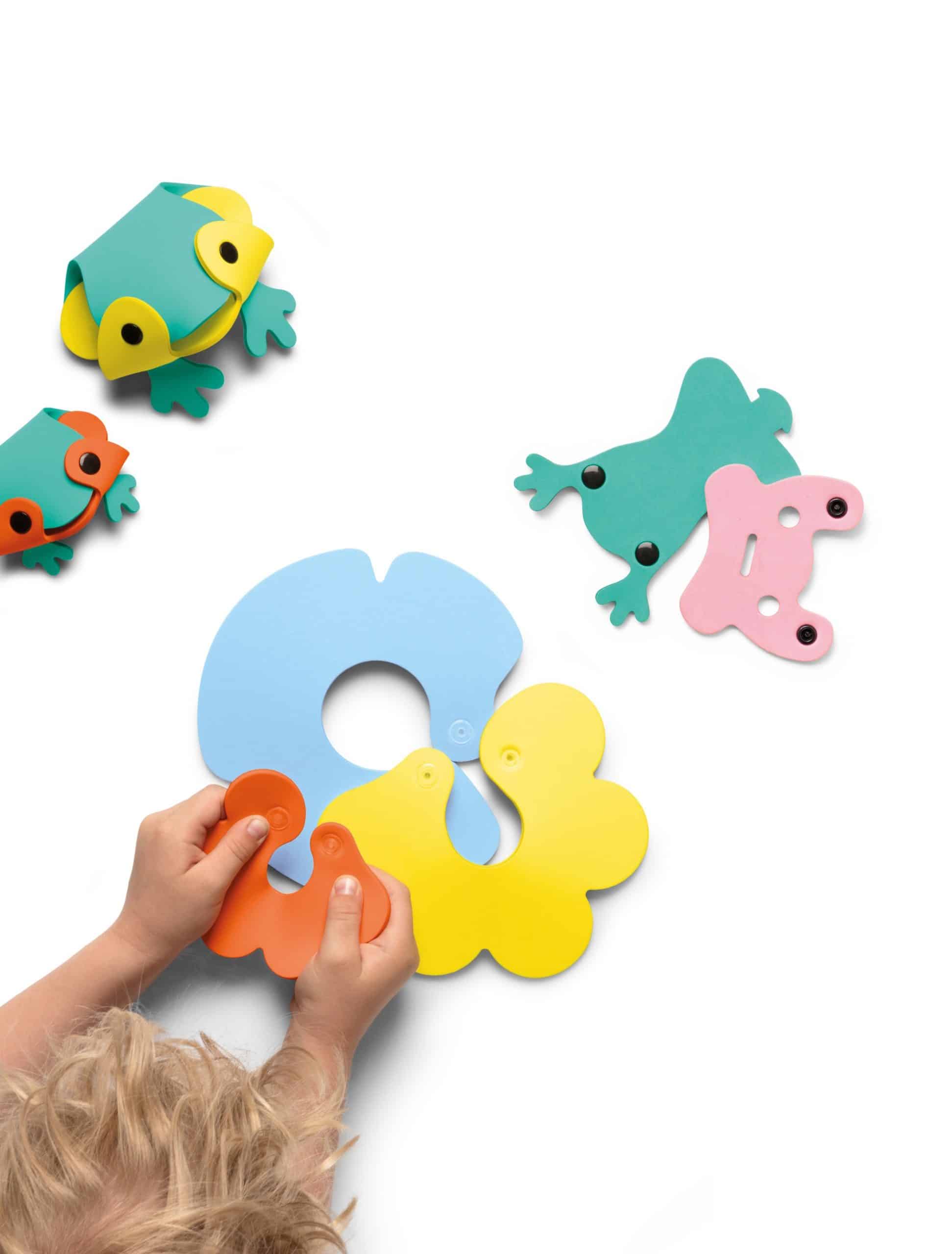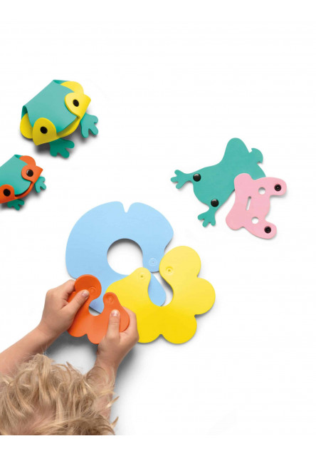 QUUTOPIA - Vytvor, predstav si a hraj sa! Nechajte Vašu fantáziu naplno pracovať s farebnou mama-žabkou a jej dvoma žabiatkami. Postavte im lekná a nechajte ich skákát z jedného lekna na druhé. Set obsahuje 9 častí, pomocou ktorých vytvoríte 6 rôznych hračiek. Vďaka kolekcii QUUTOPIA si Vaše malé ratolesti zamilujú stavanie krásnych 3D zvieratiek s pomocou mamy alebo ocka. Každý set hračiek Vás zavedie do kúzelného sveta dobrodružstiev a príbehov. Kúpanie nikdy nebolo väčšou zábavou! Sety z mäkkej peny (EVA) podporujú kreativitu, jemnú motoriku a Vám pocit naplno a zmysluplne využitého času s Vašimi deťmi. Mäkká pena je bez BPA, bez obsahu ftalátov a latexu a je recyklovateľná. Všetky kúsky neabsorbujú vodu a znižujú riziko vzniku plesní. Rozmery: 210 x 310 x 33 mm Vhodné pre deti od 3 rokov.