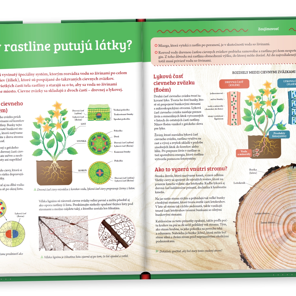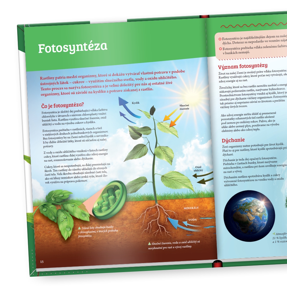 Objavte zázraky rastlinnej ríše, ktorá je všade okolo nás. Rastliny sú základom existencie ďalších foriem života na Zemi. Poskytujú kyslík a potravu. Preskúmajte ich životný cyklus ako biológovia, klíčenie, rast, rozmnožovanie, stavbu rastliny aj dômyselnú obranu pred predátormi. Pochopíte úžasnú životodarnú fotosyntézu a dozviete sa o využití rastlín v poľnohospodárstve. Obsah encyklopédie: Vitajte v ríši rastlín | Rastlinné bunky | Rastlinné telo | Listy | Ako v rastline putujú látky? | Fotosyntéza | Čo ovplyvňuje fotosyntézu? | Prečo rastliny „plačú“? | Ako sa rastliny živia? | Ako rastliny rastú? | Klíčenie | Opelenie | Ako sa rastliny množia? | Ako sa rastliny bránia? | Choroby rastlín | Ríša rastlín | Úžitkové rastliny | Čo nám rastliny poskytujú? | Rastliny zo skúmavky | Môžeme bez rastlín žiť? Zošit aktivít: Objavuj, nalepuj a spoznávaj! Zábavný a poučný zošit so samolepkami, doplňovačkami a kvízmi precvičia to, čo sa deti dozvedeli v knihe. Zošit aktivít upúta svojou hravosťou, ukotví znalosti a stane sa príjemným sprievodcom, ktorý si budú radi čítať, dokresľovať a lúštiť. Plagát: Súprava obsahuje aj prehľadný plagát s podrobnou analýzou jablone domácej: list | stavba kvetu | prierez listom | jablko (plod – malvica) | detail spodnej strany listu | prierez koreňom | prierez kmeňom | plody | korene | stonka | kvety | list | stavba listu Lis na kvety a herbár so šablónami a samolepkami V balení sa nachádza aj materiál na výrobu lisu na kvety a herbár. Postavte si oba nástroje pomocou podrobného návodu, a vytvorte si krásnu encyklopédiu pomocou skutočných kvetín. Parametre produktu: Rozmery balenia: 24 cm x 31,2 cm x 7 cm Rozmery knihy: 22 cm x 29,2 cm x 1,2 cm Rozmery plagátu: 87 cm x 60 cm Rozmery zošita aktivít: 21 cm x 28,5 cm