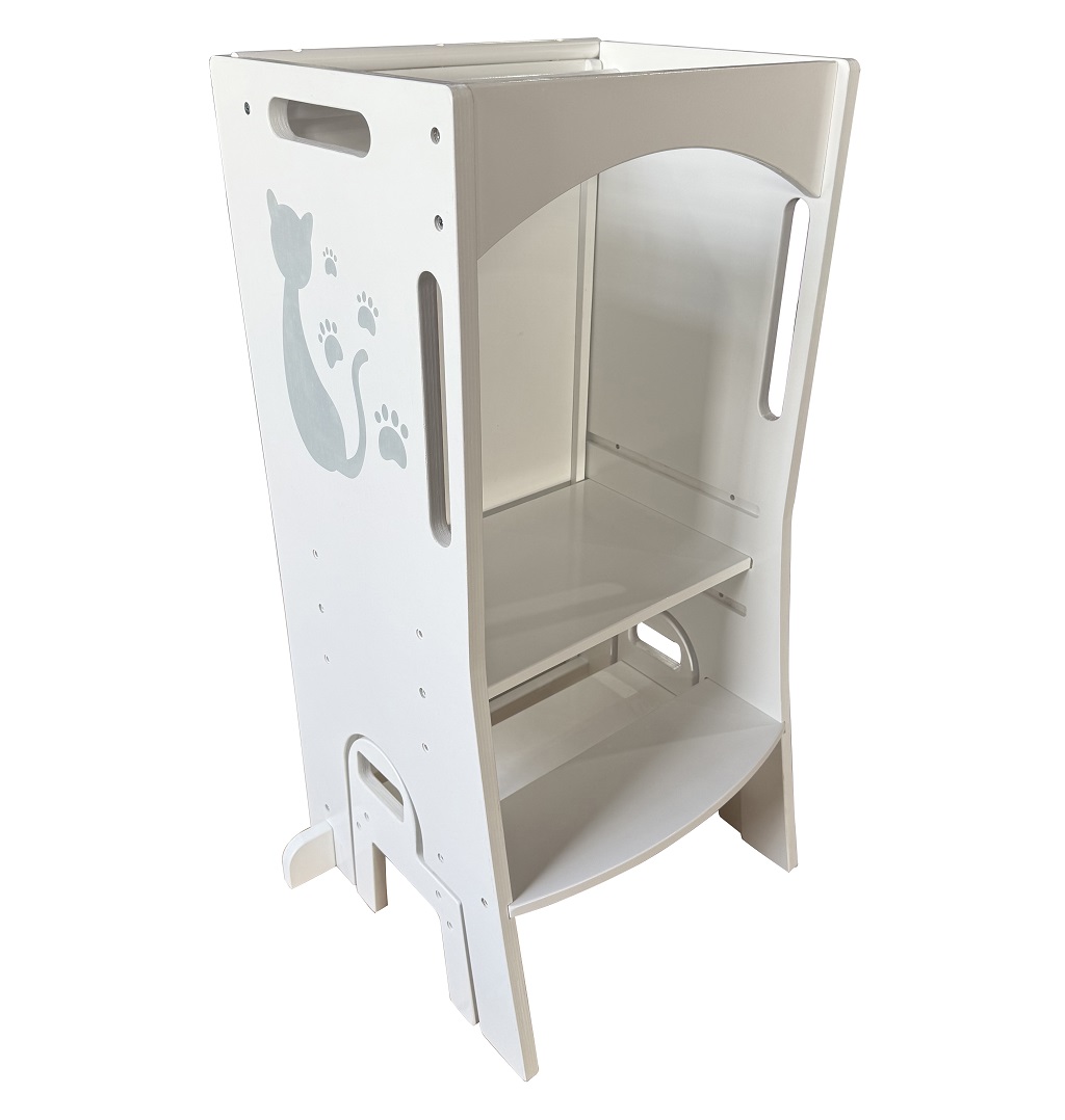 Učiace veže sú viacúčelové stoličky, ktoré dávajú deťom možnosť zapojiť sa do rôznych tvorivých činností pri kuchynskej linke či pracovnom stole. Umožňuje najmenším byť v úrovni pracovnej dosky, vidieť všetko, čo robíte a tvoriť tak priamo s Vami – vďaka tomu máte aj neustály dozor. Veža sa skladá zo stojacej plochy, na ktorej dieťa stojí, schodíka, po ktorom sa na ňu dostane az ohrádky okolo. Vďaka svojej multifunkčnosti sa dá s vežou aj „hrať“. Obsahuje magnetickú tabuľku s písmenami a číslicami av rozloženom stave je doplnená o šmýkačku. Pri používaní nenechávajte učiacu vežu v priestore, ale vždy vežu umiestnite stranou oproti schodíku k pevnej prekážke (kuchynská linka a pod.). Upozornenie:Predajom učiacej veže nepreberáme zodpovednosť za bezpečnosť dieťaťa. Dieťa na učiacej veži musí byť pod stálym dozorom dospelej osoby! Hlavné vlastnosti: viacúčelový, funkčný nábytokzdokonaľuje motorické schopnostiodolná konštrukciaobsahuje šmýkačku a magnetickú tabuľumoderný dizajn s mačičkou