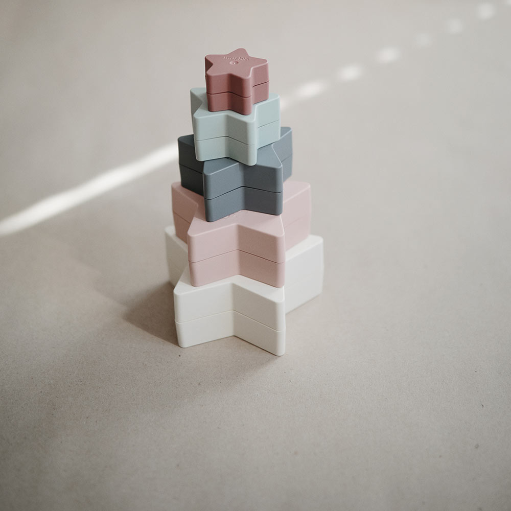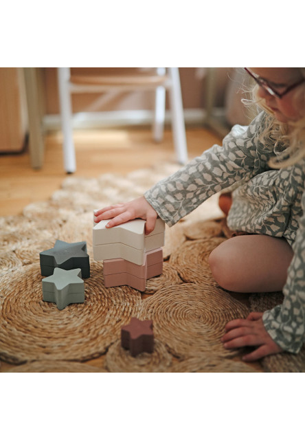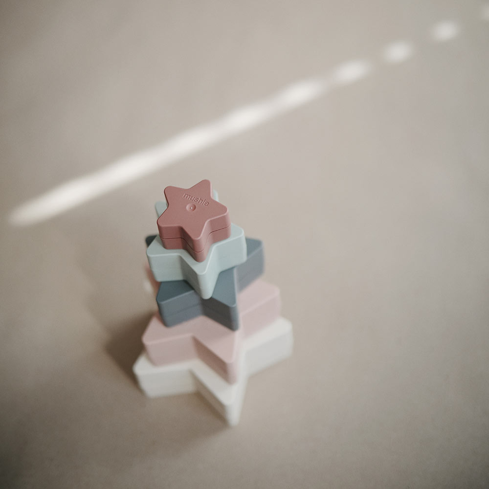 Mushie originálne a vkusne kombinuje škandinávsky minimalizmus, jemné zemité a pastelové farby a čisté línie. Mushie - prémiová dizajnová značka pre najmenších. Mushie hviezdy sú zábavnou a rozvojovou hračkou pre vaše dieťatko. Môže ich stohovať na seba, každú jednu otvoriť a ukladať menšiu do väčšej. Stohovanie, rozoberanie a vkladanie predmetov pomáha deťom rozvíjať predstavivosť, priestorové vnímanie a koordináciu ruka-oko, logické myslenie a hlavne jemnú motoriku zábavnou formou. Kombinácia jemných farieb pôsobí pozitívne na vizuálne vnímanie dieťatka. Keďže je každá hviezda zložená z 2 častí, je možné ju otvoriť a schovať do nej menšiu hviezdičku, alebo aj malú drobnosť, dôležitý poklad z prechádzky, či dokonca využiť ju ako originálnu dózičku na malú pochúťku. Rozkladanie, skladanie a stohovanie hračiek pomáha rozvíjať motoriku a myslenie detí. Základné zručnosti získané pri stohovaní či vkladaní hračiek sa stávajú základom pre zložitejšie úlohy. Navrhnuté a vyrobené v Dánsku. Vyrobené z polypropylénu, bez obsahu BPA, PVC, ftalátov, či iných škodlivín. 100% recyklovateľné. Vhodné od narodenia. Sada obsahuje 5 hviezd rôznych veľkostí, z ktorých každá sa skladá z 2 častí a je možné ju otvoriť.