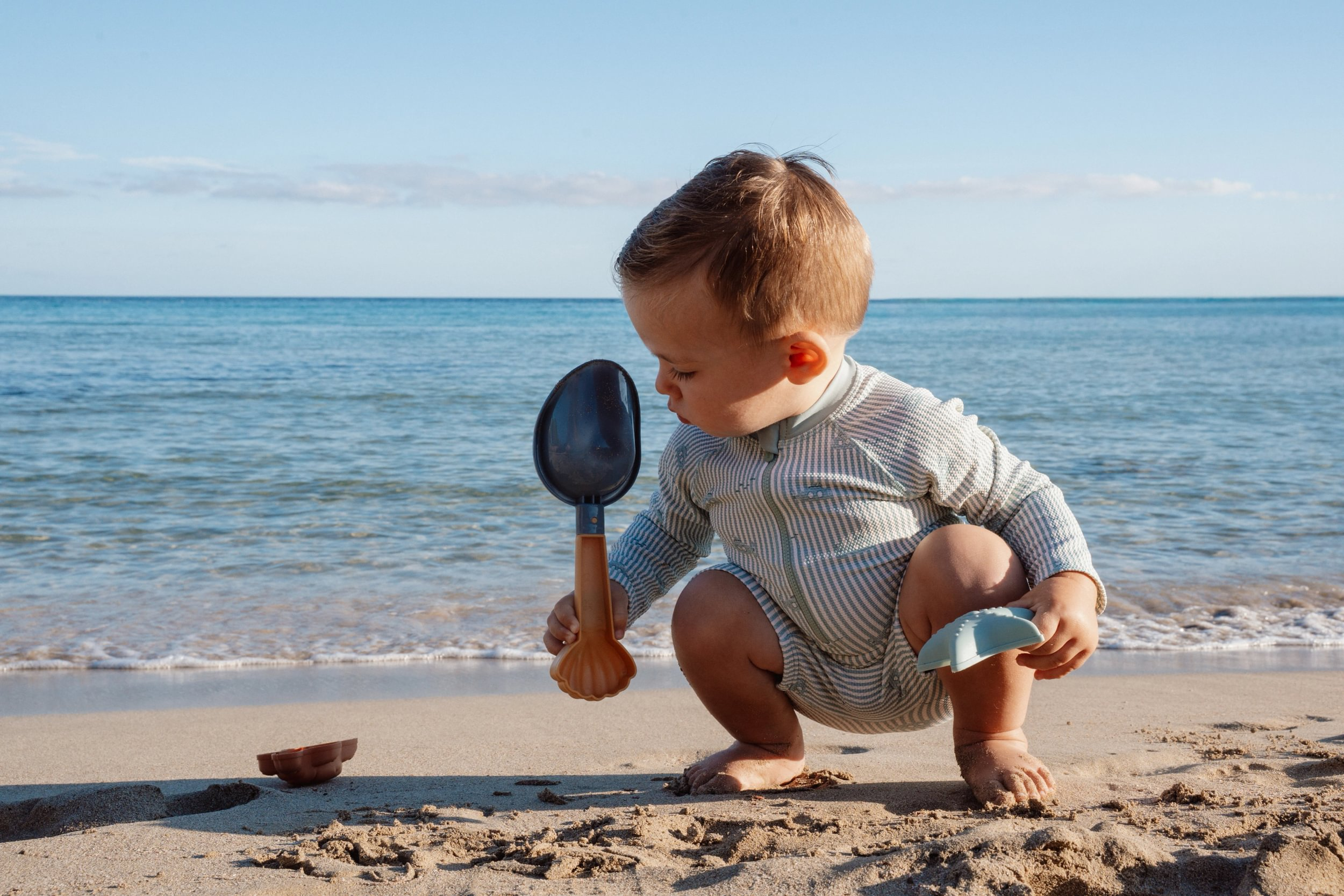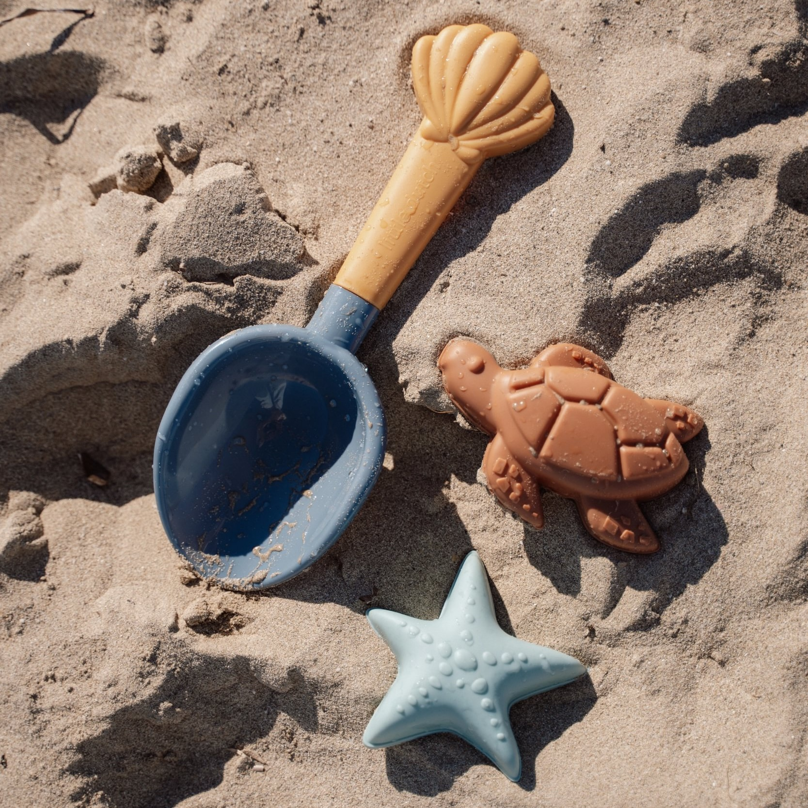 Sada na piesok s motívmi života na mori sa bude deťom hodiť doma na záhrade aj pri mori na pláži. Sadu tvorí lopatka a dve formičky v kvalitnom prevedení z pevného plastu.