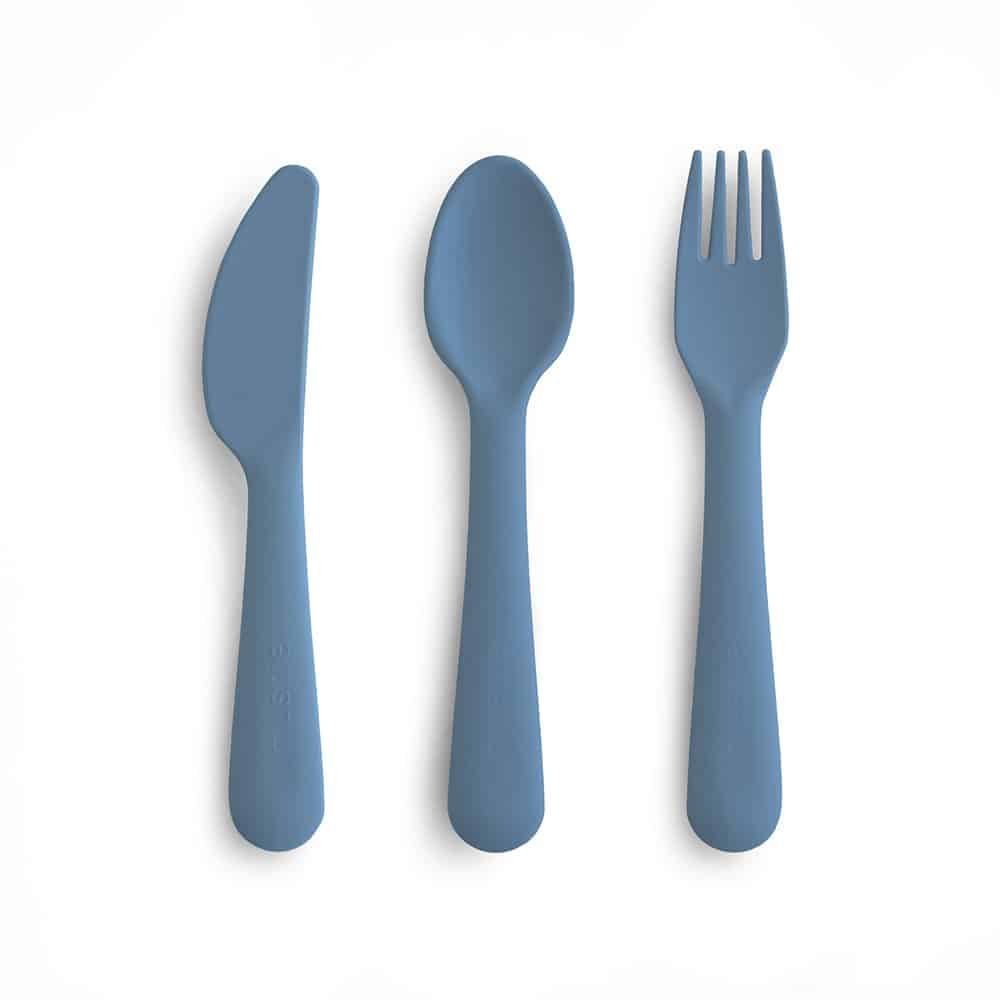 Táto sada z odolného polypropylénového plastu obsahuje vidličku, lyžicu a nožík v jemnom odtieni Twilight Blue a v čistom minimalistickom dizajne. Každý kus je ideálnej veľkosti pre deti – ľahko sa drží a poskytuje pohodlné stolovanie.