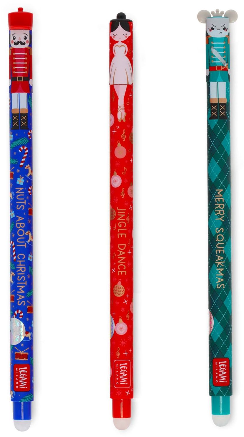 Všetci niekedy robíme chyby. Buďte pripravení na každú chybu so sadou 3 stierateľných gélových pier s vianočnými znakmi v červenom, modrom a zelenom atramente.