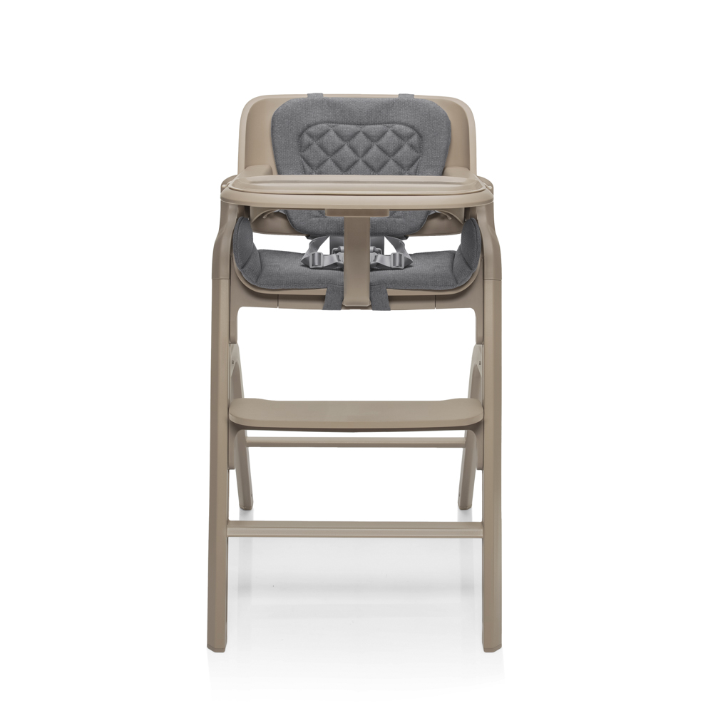 Akonáhle dieťa začne samostatne sedieť, jednoducho odstránite novorodenecký set a získate klasickú vysokú stoličku s praktickým odnímateľným pultíkom. Výškovo nastaviteľné sedadlo aj opierka nôh umožňujú ergonomické sedenie počas celého rastu.