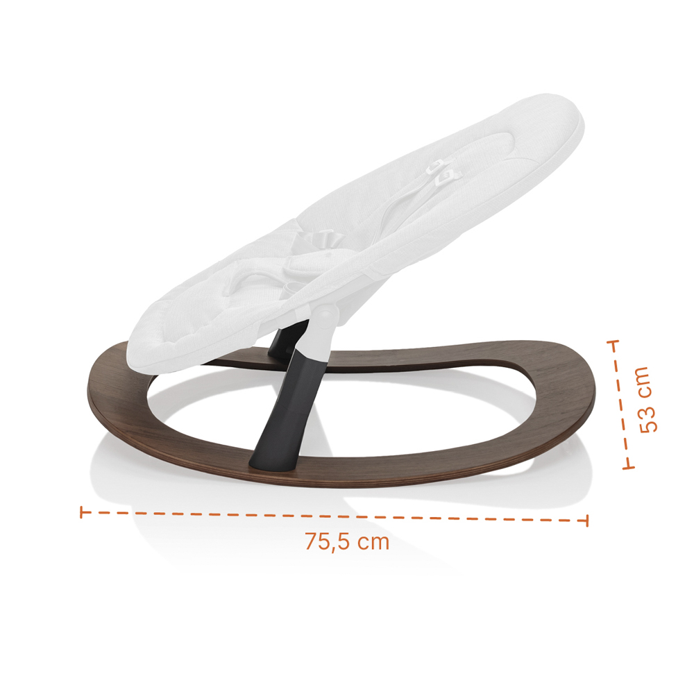 Po pripojení hojdacej základne sa novorodenecký set zmení na pohodlné ležadlo. Jemné kolísanie bábätko upokojuje a podporuje jeho prirodzený rytmus spánku aj oddychu. Základňa je stabilná, jednoducho sa nasadzuje a vďaka elegantnému drevenému dekoru zapadne do moderného interiéru.