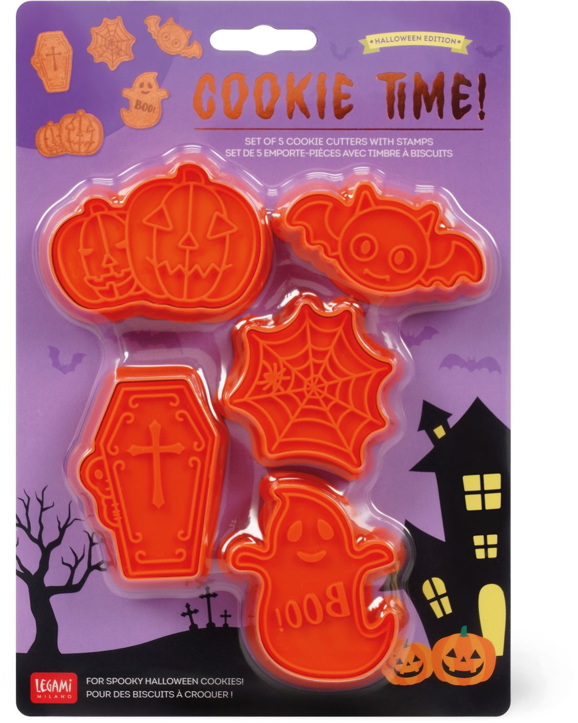 Súprava Legami Cookie Time! na pečenie sušienok alebo iných sladkostí na halloweensku párty. Jednu stranu použite na vystrihnutie tvaru a druhú stranu na odtlačenie obrázka.