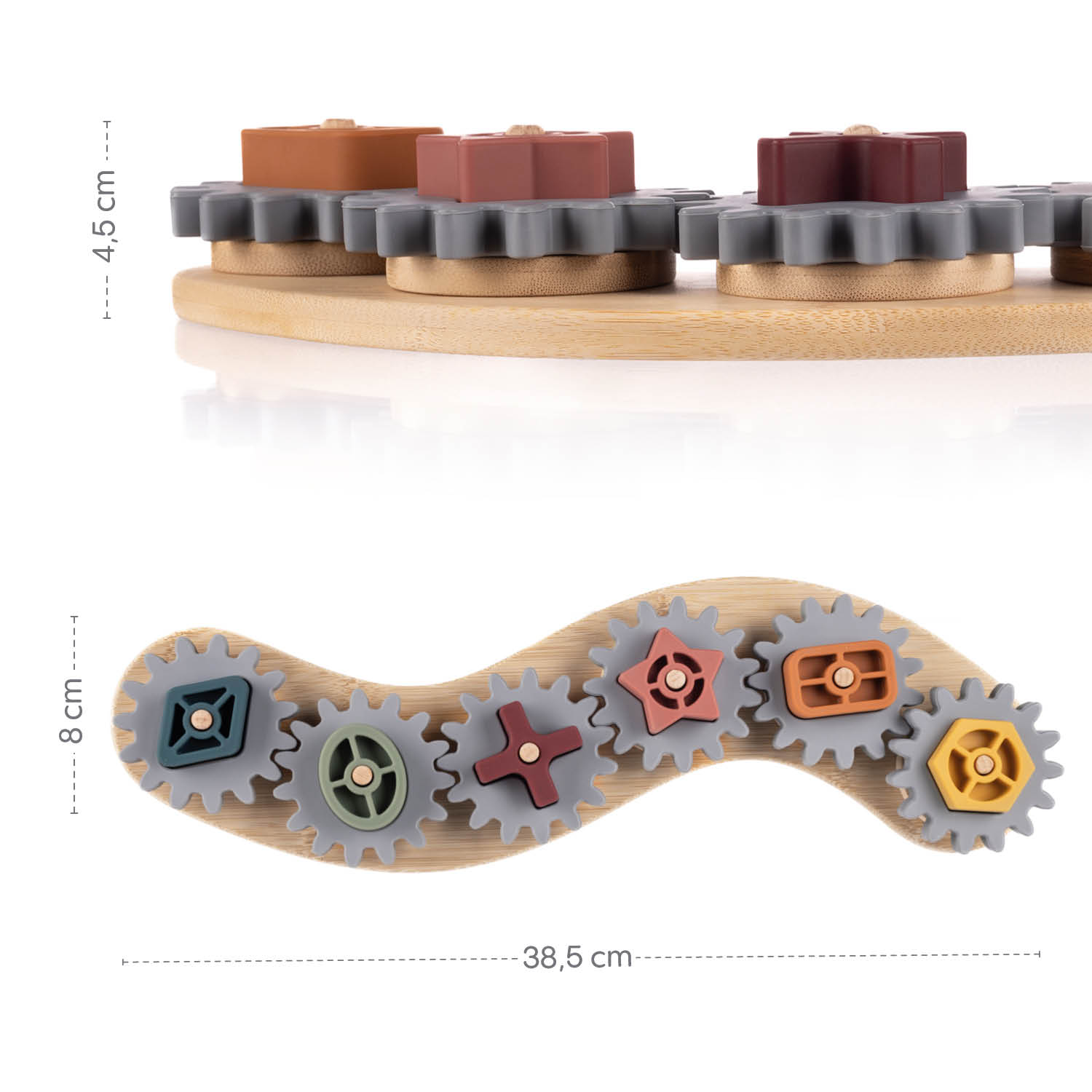 Objavte kúzlo učenia s našou bambusovo-silikónovou skladačkou, ktorá prepája zábavu s poznaním. Farebné ozubené kolieska rozvíjajú jemnú motoriku, logické myslenie a predstavivosť vášho dieťaťa. Kombinácia prírodného bambusu a bezpečného silikónu poskytuje príjemný senzorický zážitok a podporuje prirodzené objavovanie sveta mechaniky.