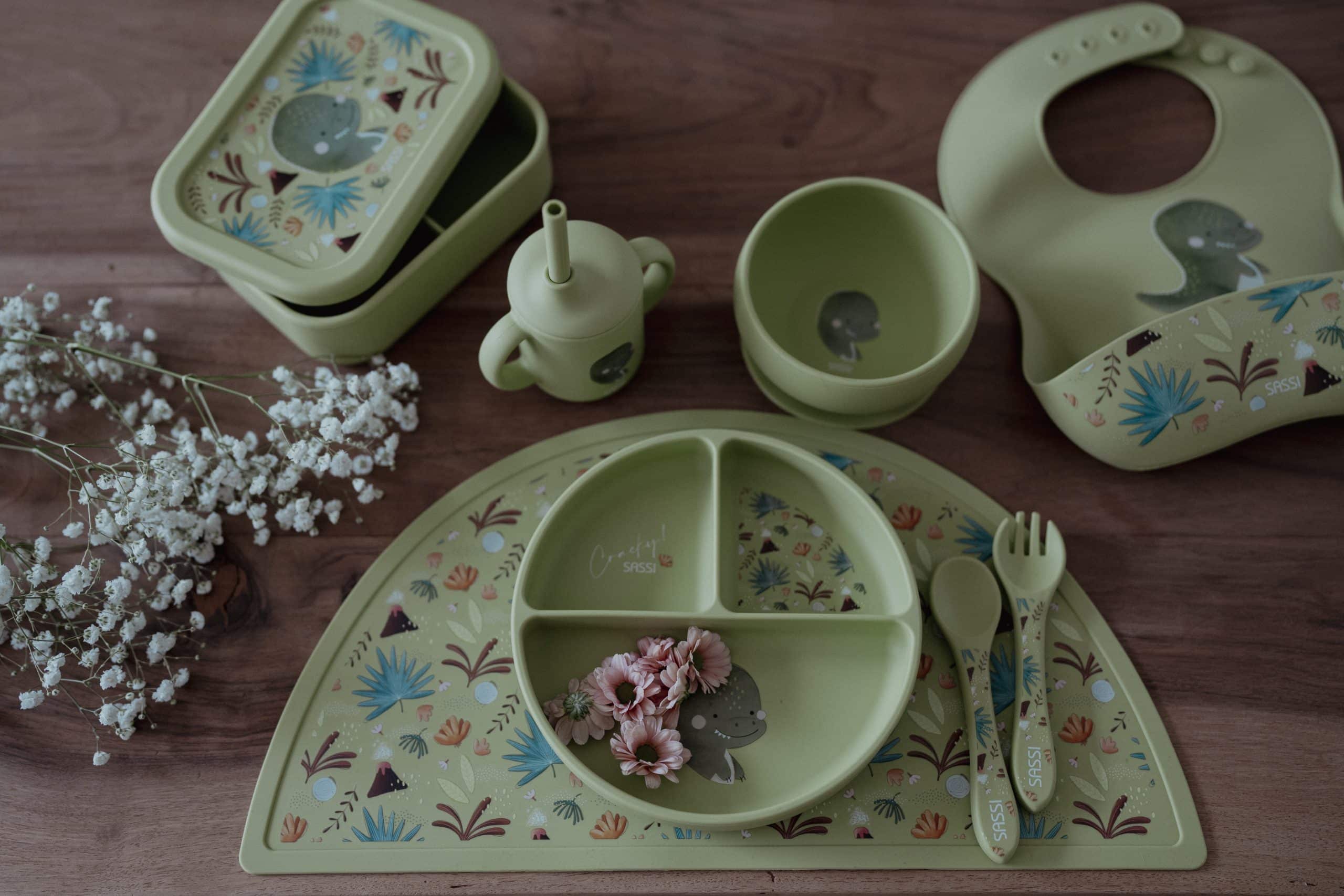 Vyrobené zo 100 % potravinárskeho silikónu. Jedálenské súpravy SASSI neobsahujú škodlivé chemikálie ...zobrazit více