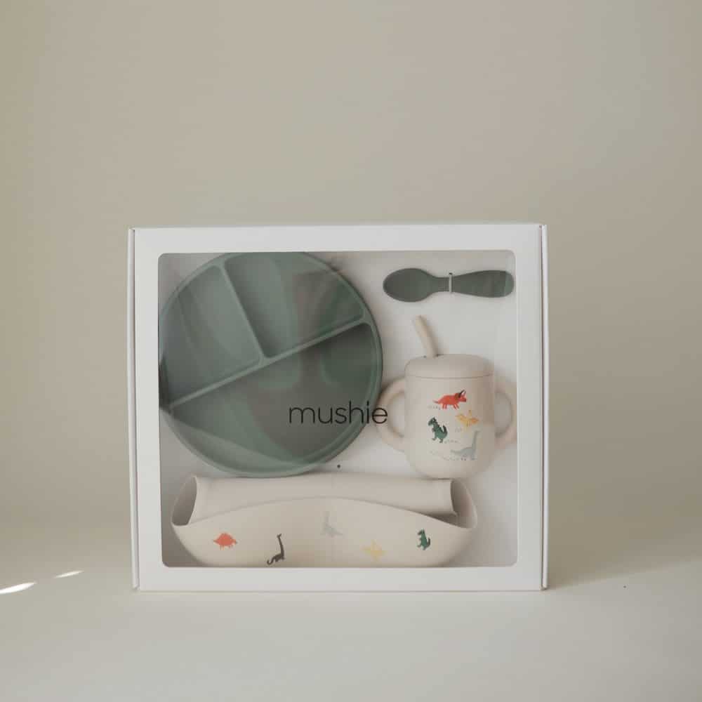Mushie Silikónový jedálenský set pre batoľatá – detaily