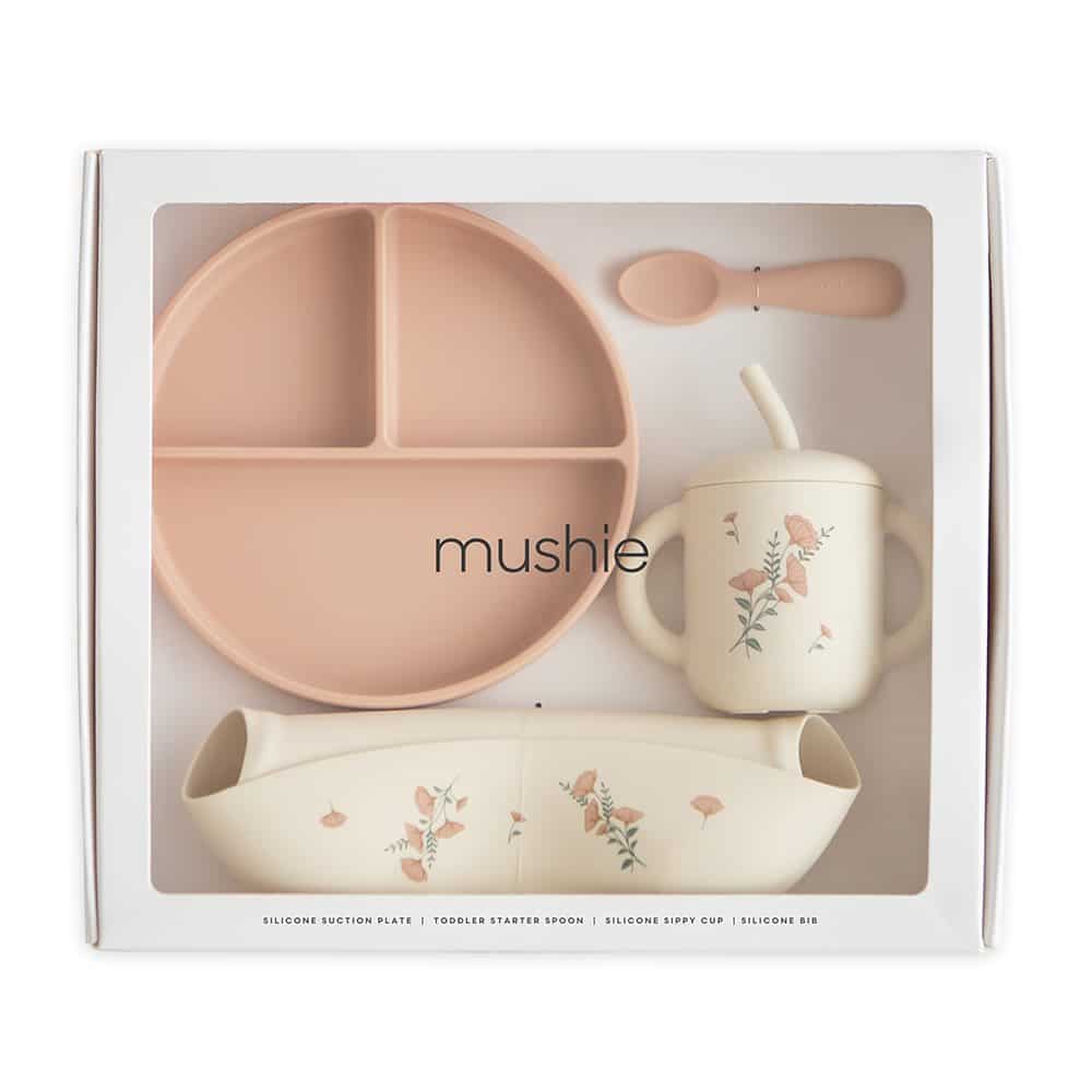 Mushie Silikónový jedálenský set pre batoľatá – detaily