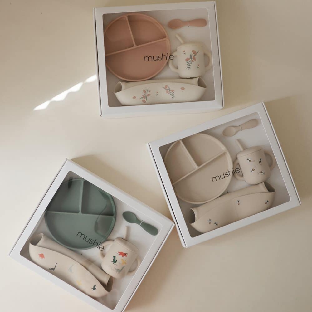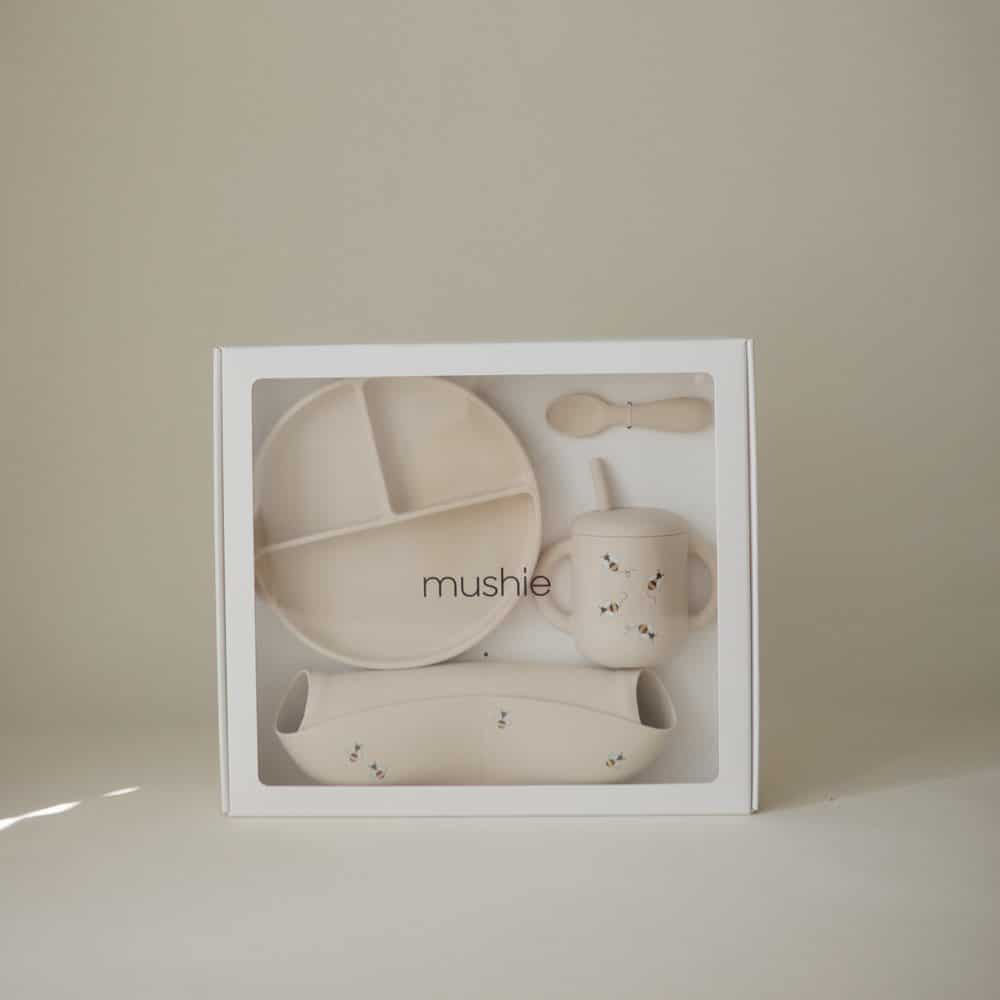 Mushie Silikónový jedálenský set pre batoľatá – detaily