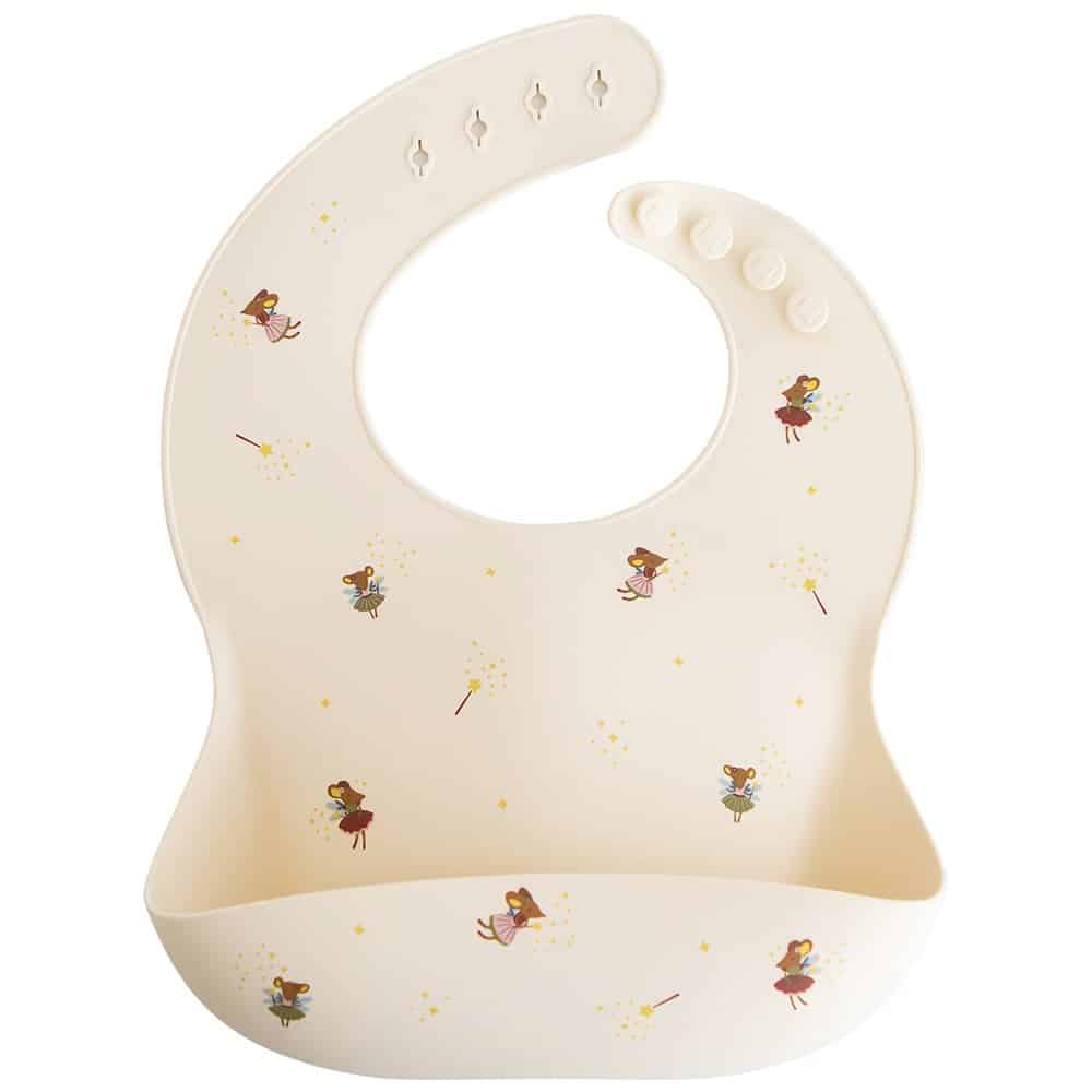 Udržte svoje dieťatko v pohodlí a čistote s premyslene navrhnutým silikónovým podbradníkom Mushie.