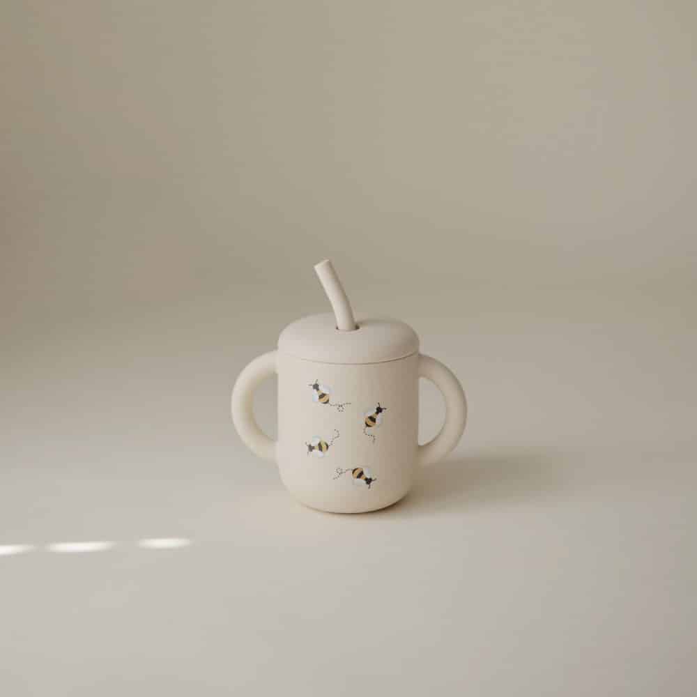 Mushie Silikónový pohárik so slamkou mushie - bees