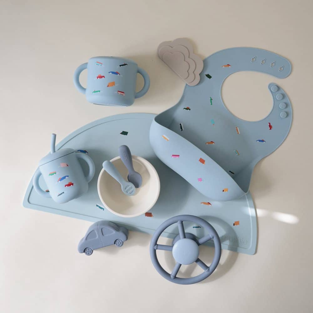 Mushie Silikónový pohárik so slamkou mushie - retro cars