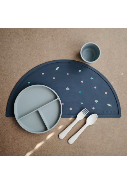 Mushie silikonový protiskluzový talíř s přísavkou zůstává stabilní na hladkém povrchu stolu, podložky či jídelní židle. Stačí talířek přitlačit, přísavka podtlakem přilne k podložce a talíř zůstane nepohnutý na svém místě. Talíř s přísavkou je skvělým pomocníkem při prvních příkrmech a hlavně při začátcích samostatného jídla. Díky předělení na 3 části zůstává hlavní jídlo a přílohy nesmíšené, jídlo tak děti více zajímá a mohou se seznamovat s chutí a podobou jednotlivých pokrmů.