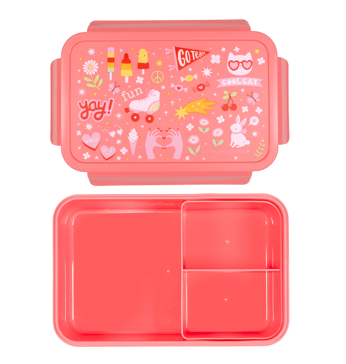 Tento praktický desiatový box s roztomilou potlačou sa stane perfektným spoločníkom detí do školy alebo na výlety. Vďaka vzduchotesnému zacvakávaciemu veku a vyberateľnej nádobke s dvomi priehradkami bude každá desiata prehľadne usporiadaná po celý deň. Ideálna pre chutný a pestrý obed či desiatu do školy alebo na cesty. Parametre: • Box na desiatu: 22 x 7 x 14,5 cm • Tácka: 9 x 5,5 x 12,5 cm • Obsah: 1,2 litra • Materiál: PP • Údržba: nevhodné do umývačky a mikrovlnnej rúry