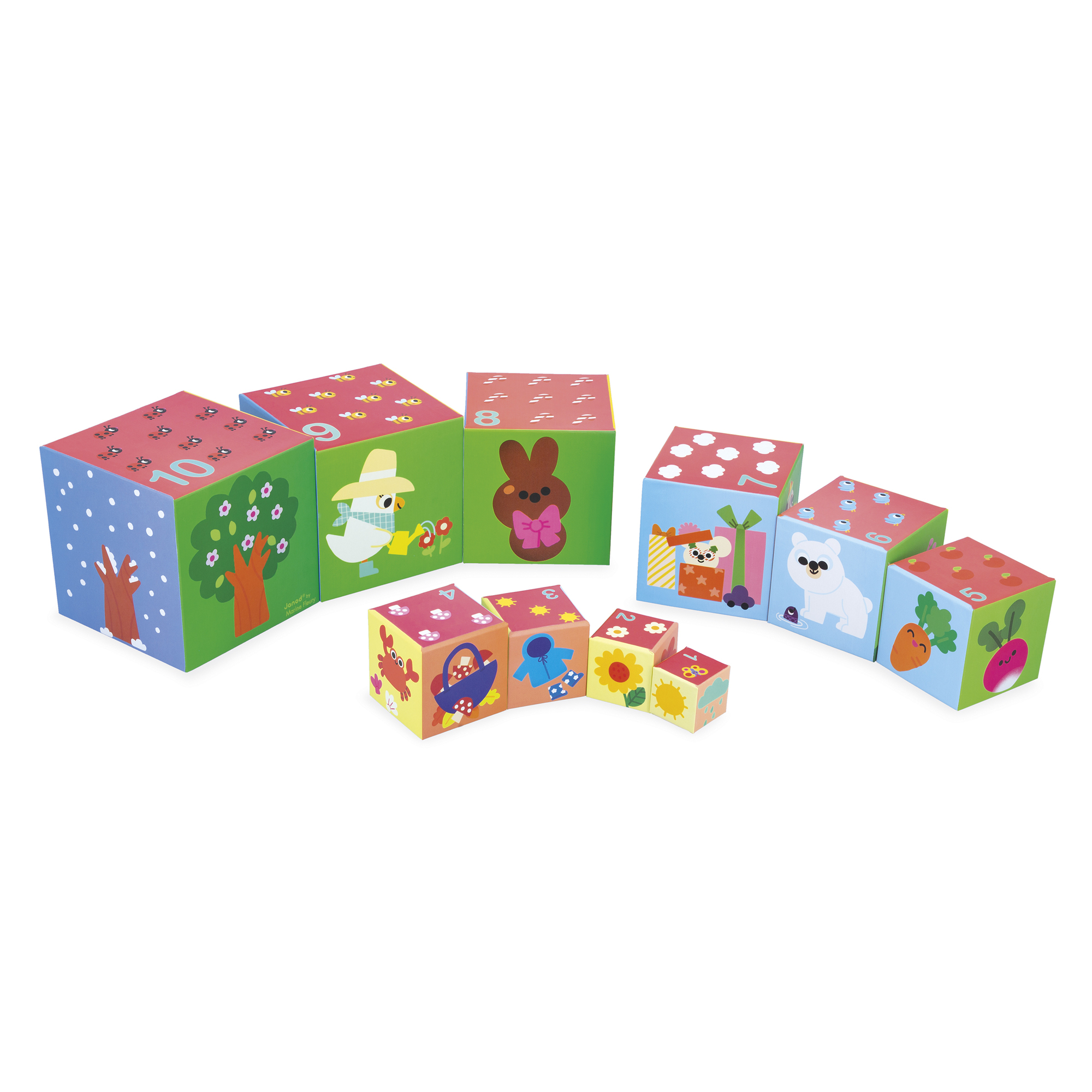 Skladá sa z 10 kociek a pozýva deti objavovať 4 ročné obdobia prostredníctvom farebných ilustrácií.