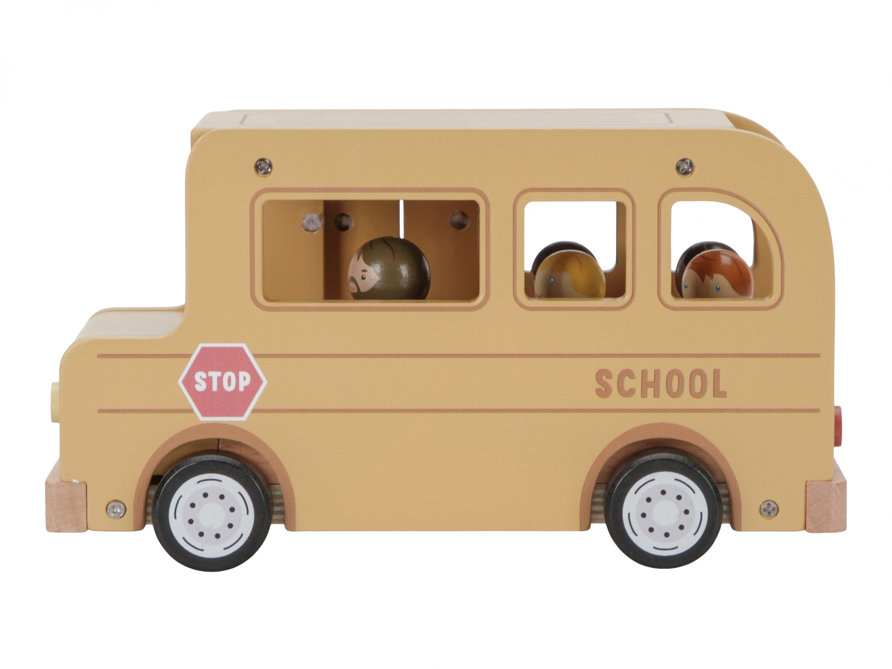 Školní autobus v kvalitním dřevěném provedení má odnímatelnou střechu a otevírací dveře, aby bylo možné dovnitř posadit školáky a řidiče. Jakmile jsou všichni cestující usazeni, řidič může nastartovat a vydat se na cestu do školy!