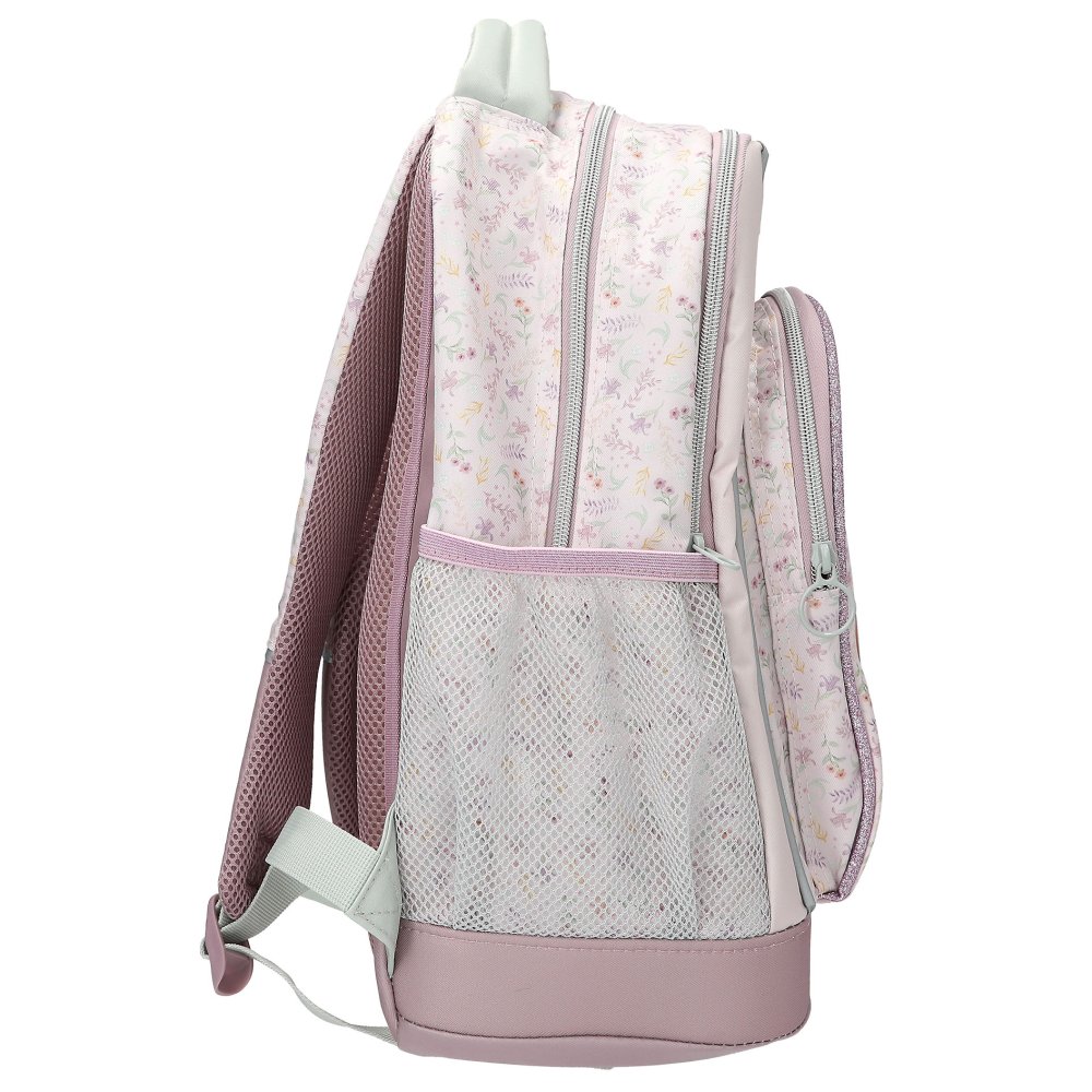 Skvelý školský batoh značky Top Model sa hodí do výbavy predovšetkým mladším školáčkam či študentkám. Batoh disponuje ergonomicky spevneným a priedušným chrbtom. Ďalej sú súčasťou dva pohodlné, dĺžkovo nastaviteľné, ramenné popruhy s polstrovaním a mäkkým pútkom do ruky. Tento mimoriadne praktický ruksak ponúka dve veľké vrecká, prostredné s intergrovaným organizérom na perá a kľúče a priestranné predné vrecko. Všetko uzatvárateľné na zips. Dve postranné vrecká na fľašu s pitím. Batoh je vyrobený z kvalitného a vysoko odolného polyesteru. Nechýbajú reflexné prvky pre bezpečnosť Vašich detí vpredu aj vzadu, spodná časť odpudzujúca vodu a nečistoty. Rozmery: výška 44 cm, šírka 34 cm, hĺbka 22 cm. Materiálové zloženie: 100% polyester. Váha: 0,647 kg