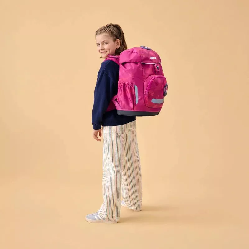Deti majú v hlavnej priehradke s priestorom na zošity vždy dobrý prehľad. Vďaka flexibilnej priehradke na knihy zostávajú ťažké školské knihy blízko chrbta. Cennosti nájdu bezpečné miesto v sieťovanom vrecku s krúžkom na kľúče a peračník je vždy po ruke v priehradke vo veku na zips.