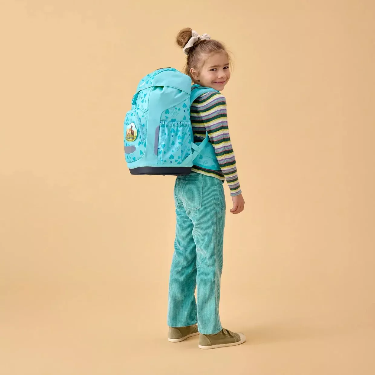 Deti majú v hlavnej priehradke s priestorom na zošity vždy dobrý prehľad. Vďaka flexibilnej priehradke na knihy zostávajú ťažké školské knihy blízko chrbta. Cennosti nájdu bezpečné miesto v sieťovanom vrecku s krúžkom na kľúče a peračník je vždy po ruke v priehradke vo veku na zips.