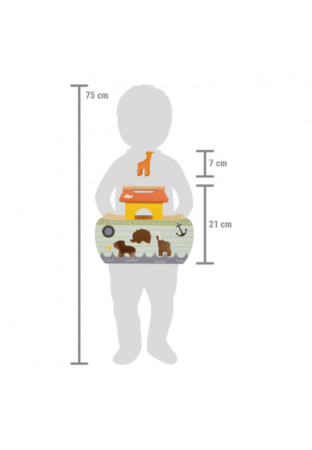 Vydejte se na velké dobrodružství Noemovy archy. Robustná drevená loď s madlem pre jednoduché prenášanie a odnímateľným vikom. Táto loď v podobe Noemovy archy je fascinujúci herný svet, ktorý deťom prináša pestrou a dlhotrvajúcu zábavu. Hra má 15 drevených figúrok, ktoré sú ľahko uchopiteľné pre detské ruky. Obsahuje 6 párov zvířátek, 2 ľudské figúrky a žebřík. Všetky figúrky sú ideálne pre výkon vozidla a pomáhajú tak trénovať motorické zručnosti. Vďaka odnímateľnému viku s rukojetí lze loď snadno otevřít a figurky zase vyjmout. Precízne prepracovaný dizajn, krásne ilustrácie je v detskom pokoji opravdový poutač. Hra podporuje rozvoj motorických zručností, rozpoznávanie tvarov a zároveň podporuje detskú predstavivosť a povzbudzuje deti, aby znovu a znovu vykresľovali vlastné príbehy a dobrodružstvá. Noemova archa sa skvele hodí k ostatným hračkám a hrám z radu "Safari". Hlavné vlastnosti: vkládací dilky sú ľahko uchopiteľné pre detské rukydizajn s krásnymi ilustráciamipodporuje rozvoj motoriky, koordináciu ruka-oko a rozpoznávanie tvarovinšpiruje detskú fantazii a povzbuzuje je k vypráveniu príbehov