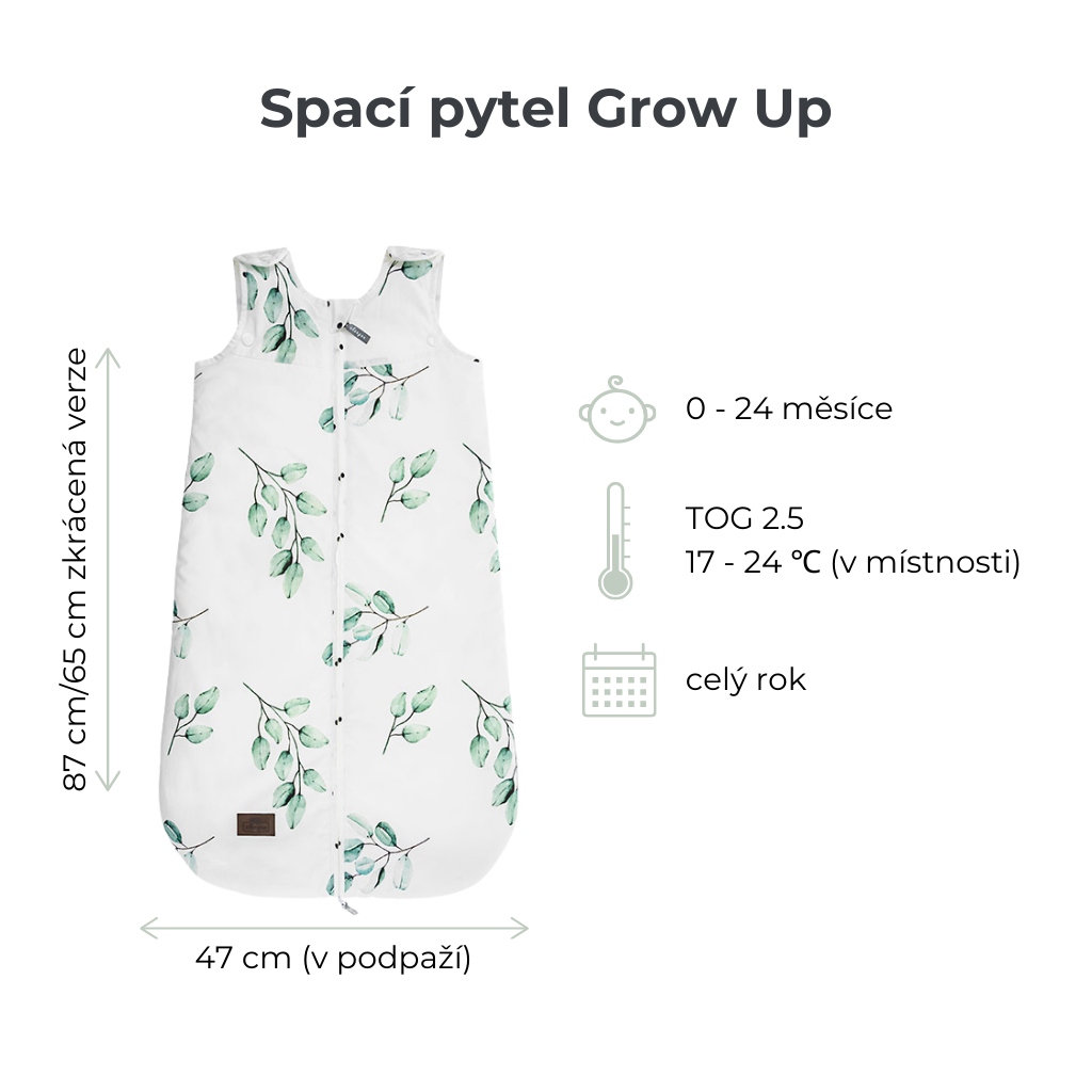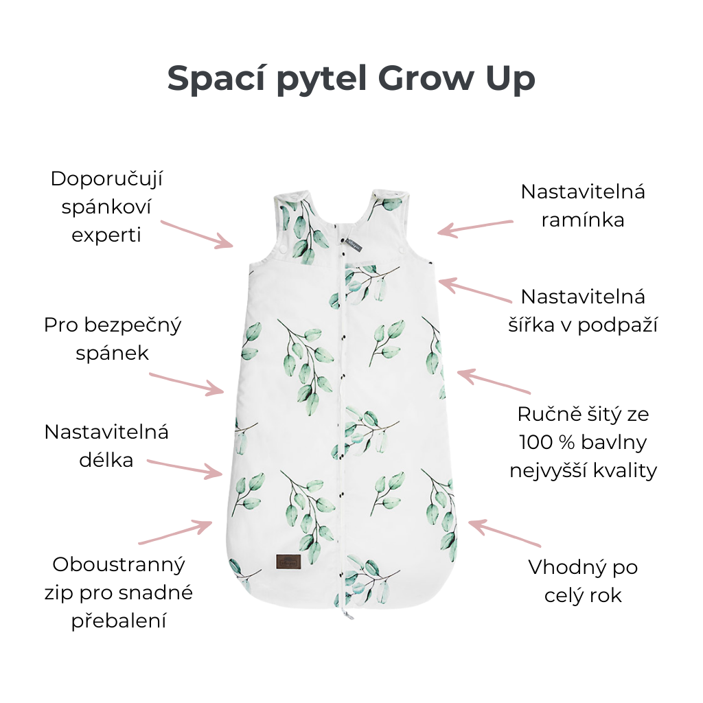 Spací pytel Sleepee Grow Up Ivory Forest je skvělá volba pro všechny děti, které se rády v noci odkopávají. Je rostoucí a dostatečně prostorný, takže i větší děti v něm mají dostatek místa pro pohodlný spánek. Určený pro děti od narození do 2 let.