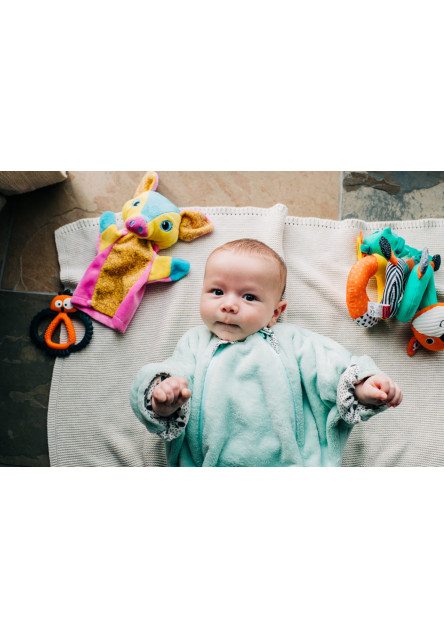 Tvar spacího pytle umožňuje volný pohyb a přirozenou polohu nožiček, která je důležitá pro správný vývoj kyčlí. Díky dvěma dlouhým zipům dítě snadno přebalíte i umístíte do spacího pytle.