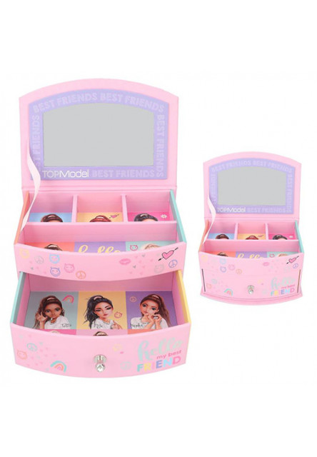 Kvalitně zpracovaná dívčí šperkovnice značky Top Model vyrobená z pevného kartonu se zrcátkem.