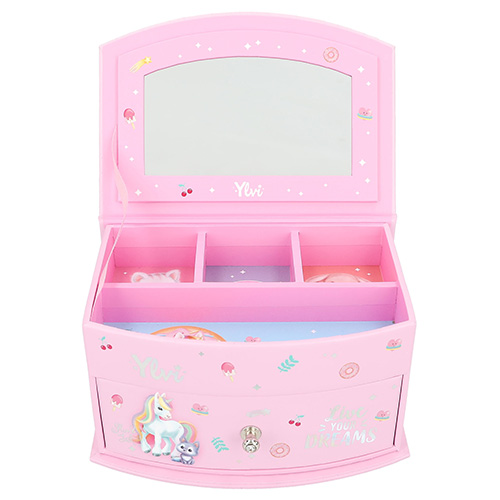 Ylvi Šperkovnice se zrcátkem Ylvi, Růžová, jednorožec na obláčku v duze