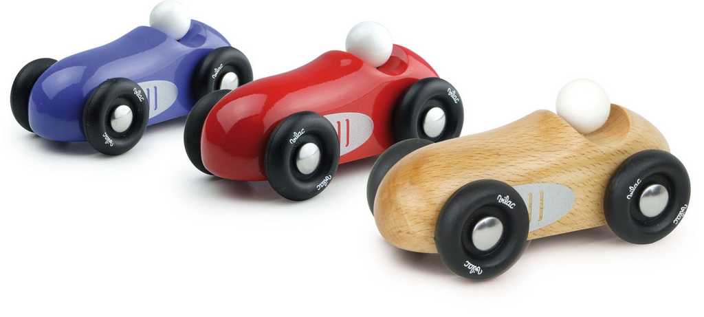 Pretekárske auto vyrobené z lakovaného dreva v prírodnej farbe, s masívnymi gumovými kolesami. Je vhodné ako na hranie tak ako dekorácia do izieb detí či dospelých. Vyrobené vo Francúzsku. Hlavné vlastnosti: vyrobené vo Francúzskuvhodné aj ako dekorácia