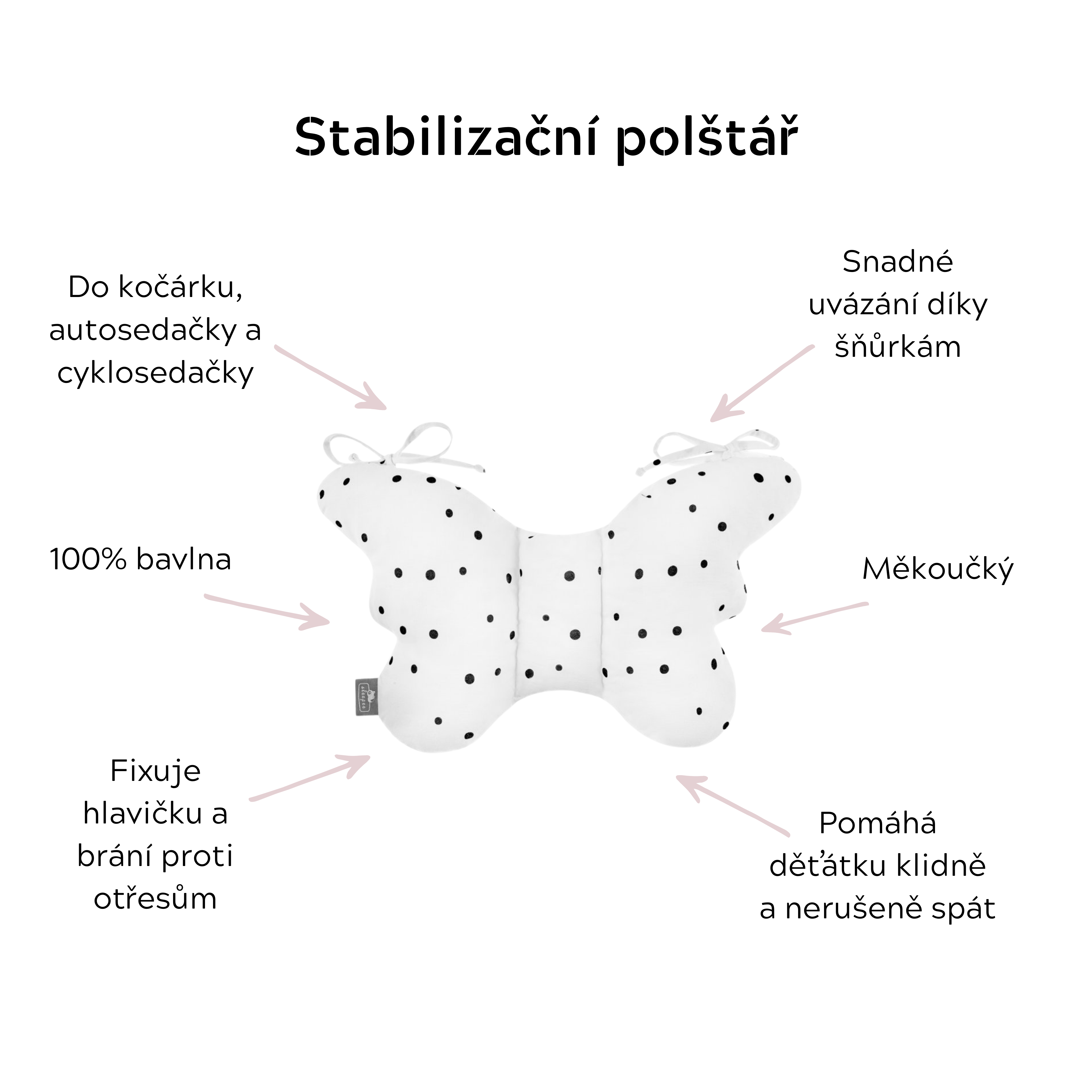 Stabilizační polštářek ve tvaru motýlka Sleepee Butterfly pillow Green Forest poskytuje oporu hlavičky dítěte a výrazně eliminuje otřesy. Využijete ho v kočárku, autosedačce nebo v cyklosedačce na vašich výletech na kole.