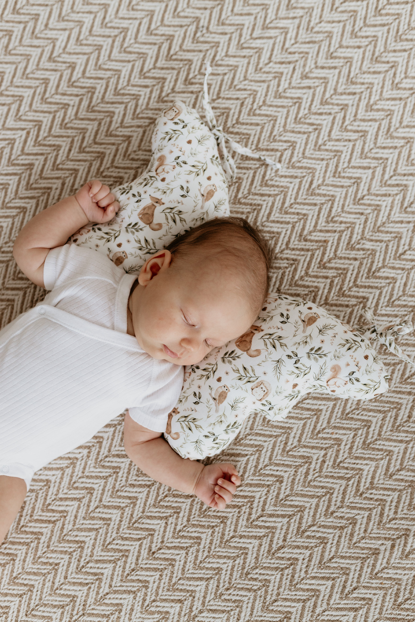 Stabilizační polštářek ve tvaru motýlka Sleepee Butterfly pillow Ivory Forest poskytuje oporu hlavičky dítěte a výrazně eliminuje otřesy. Využijete ho v kočárku, autosedačce nebo v cyklosedačce na vašich výletech na kole.