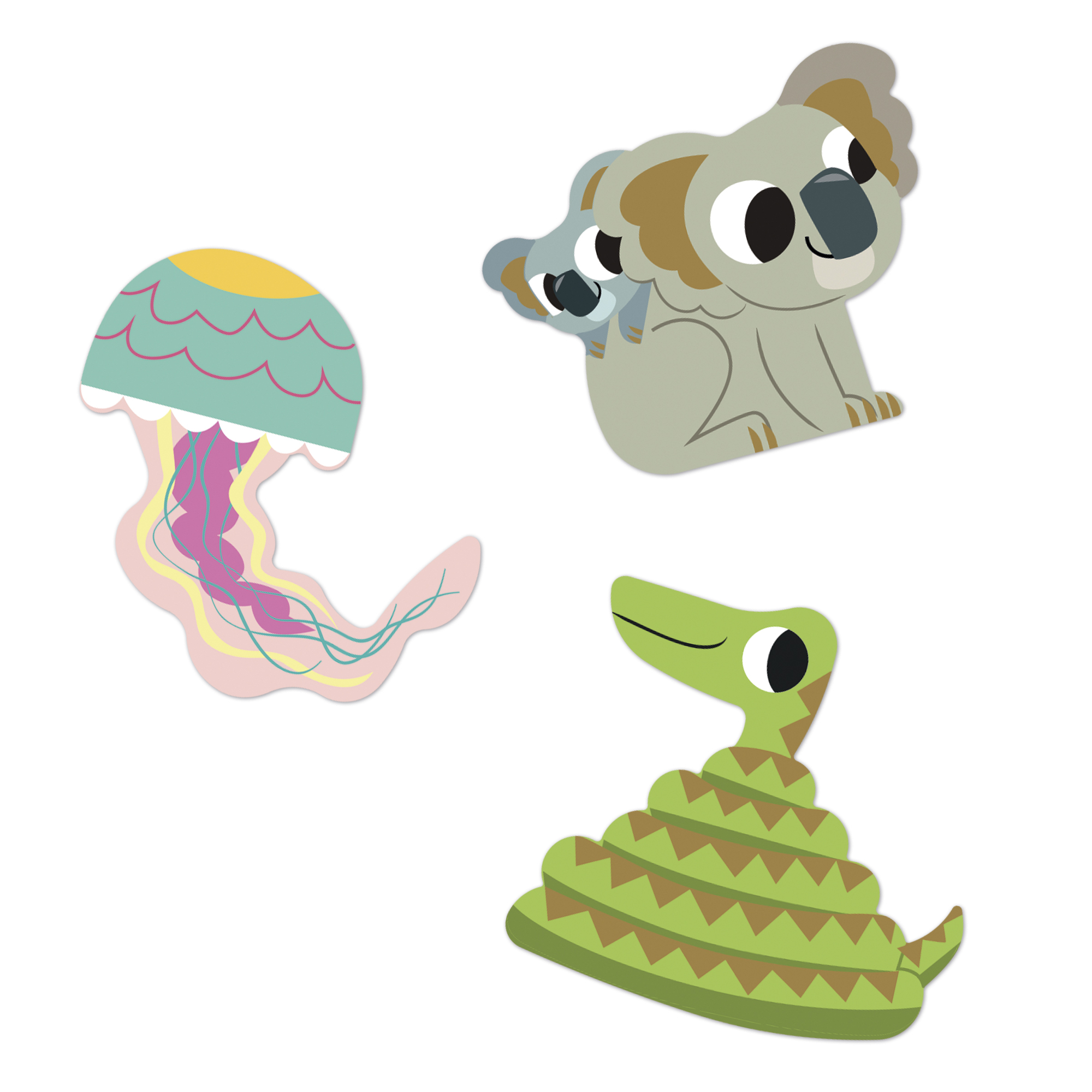 Vitajte v džungli! Táto knižka s nálepkami v tvare pandy obsahuje 100 nálepiek s motívom exotických zvierat. Zadná strana každej nálepky je predrezaná do polovice, aby sa ľahšie držala. Veľkosť nálepiek bola špeciálne navrhnutá pre ruky detí vo veku od 3 rokov: merajú približne 5 x 5 cm (max.). Niektoré nálepky majú pekný efekt zlatej fólie. Táto aktivita pomáha rozvíjať jemnú motoriku a kreativitu. Je ideálna pre deti vo veku od 3 rokov.