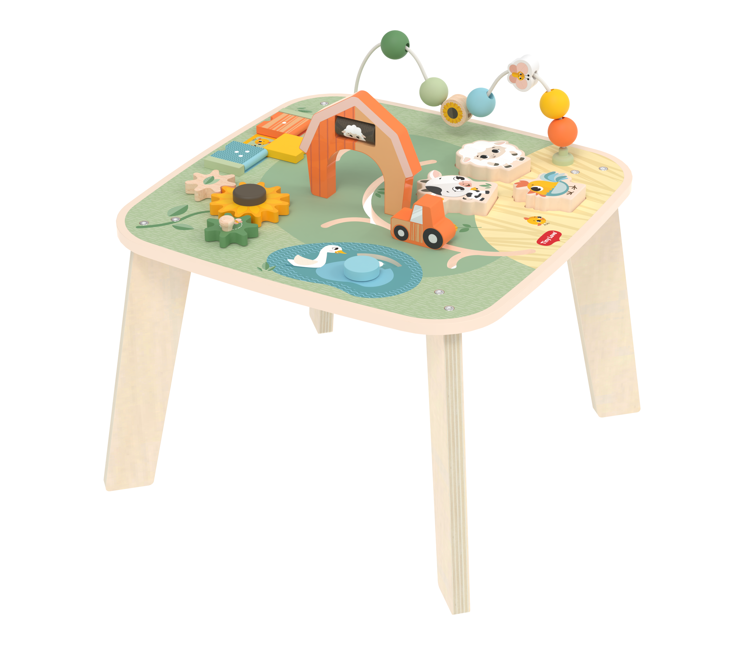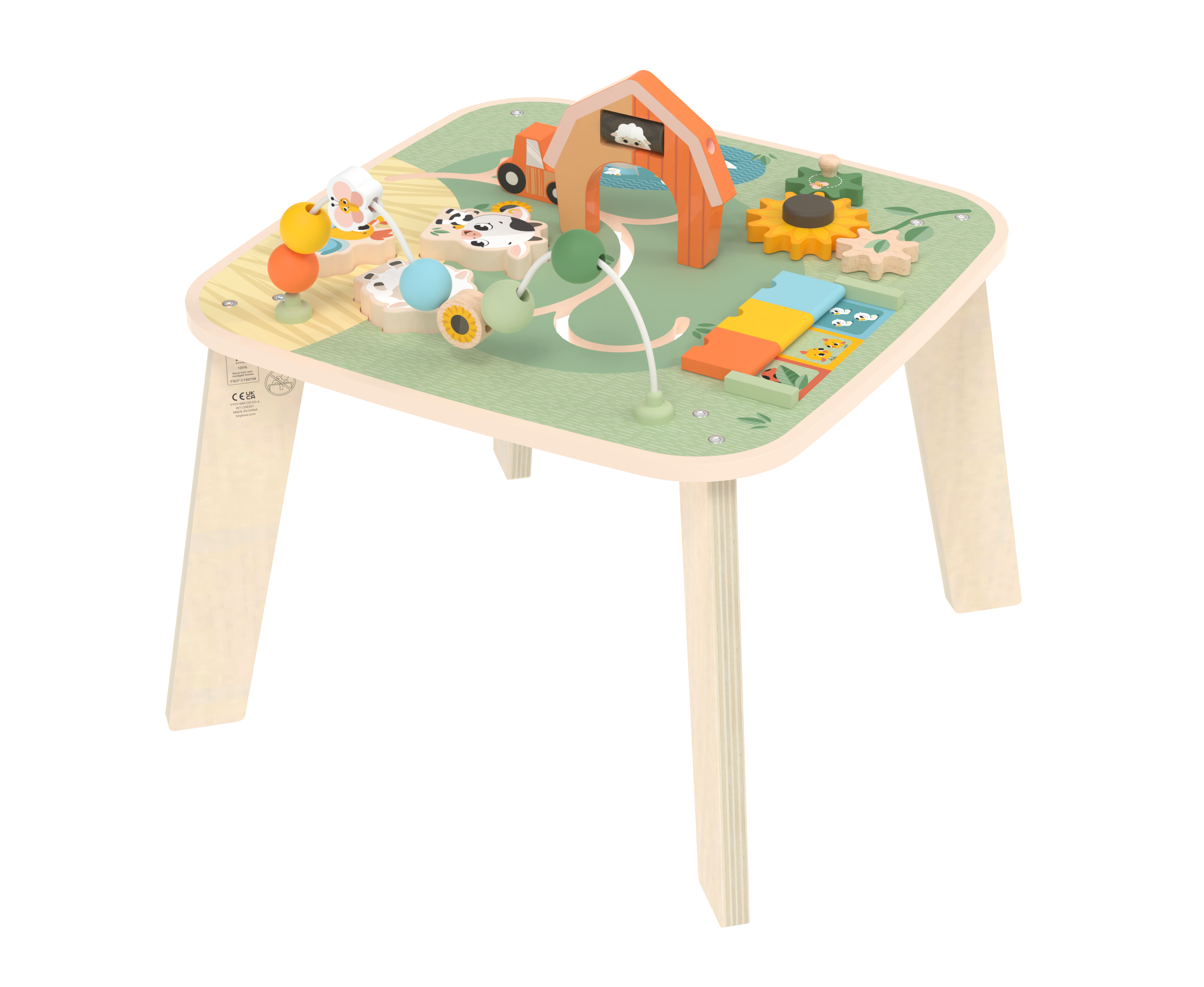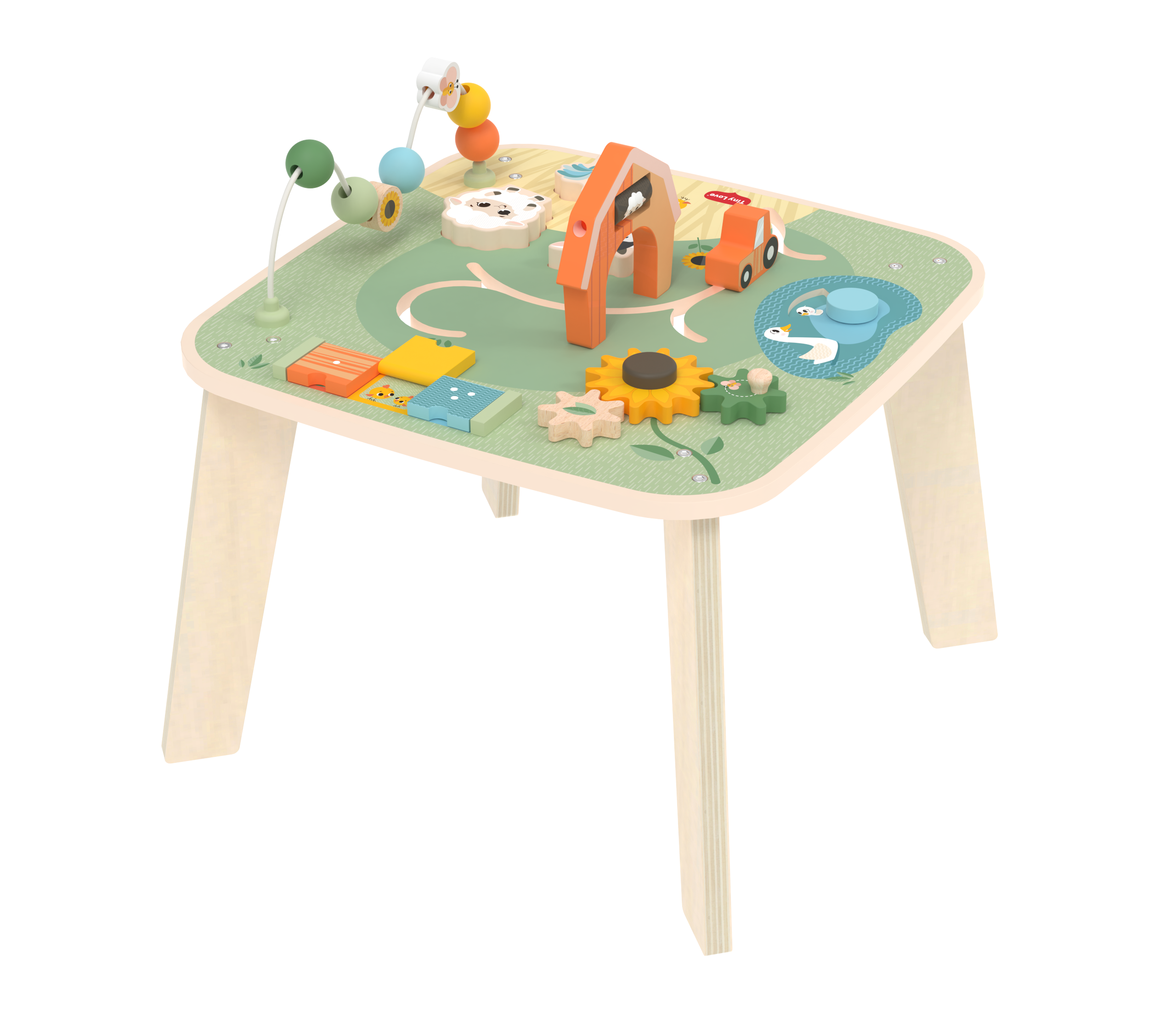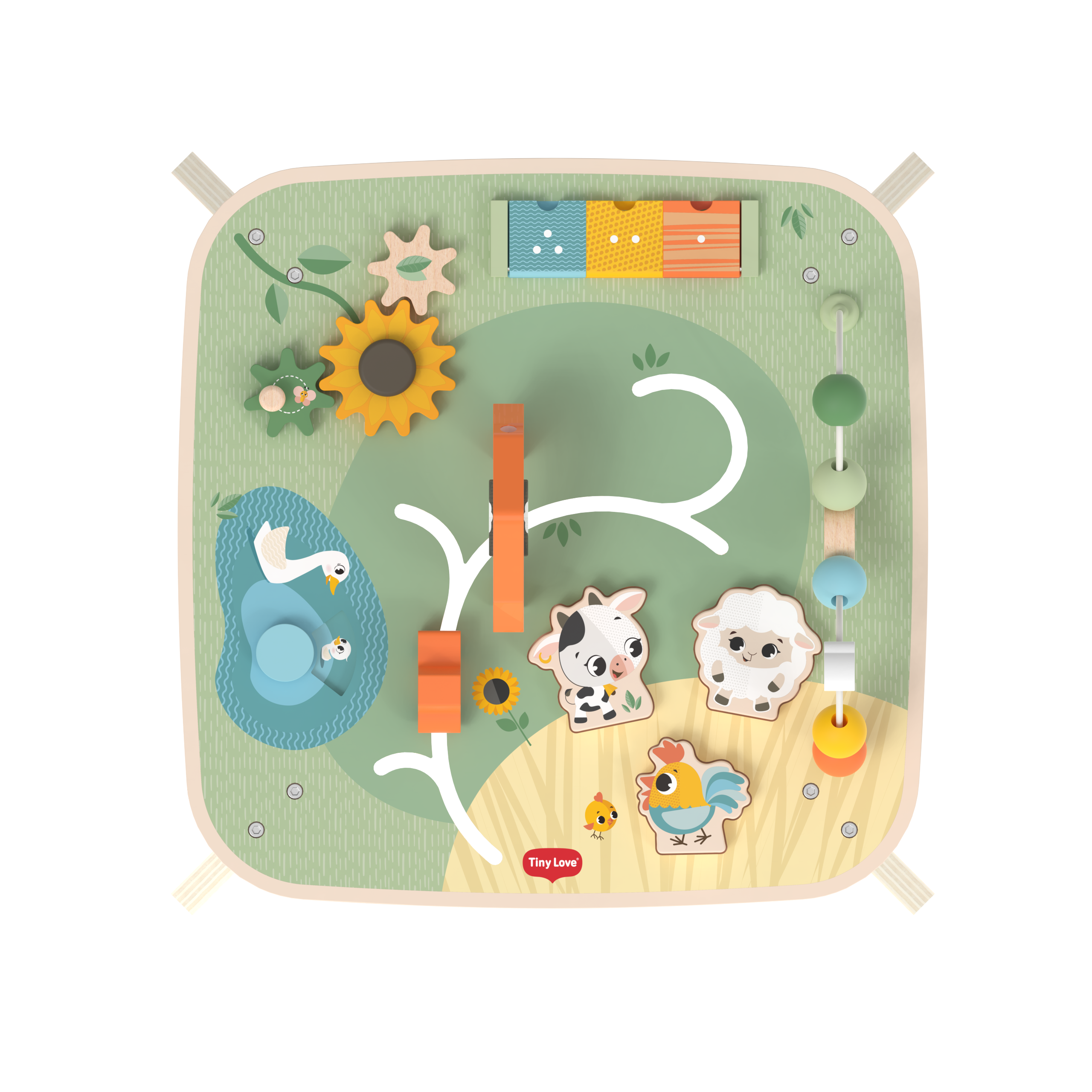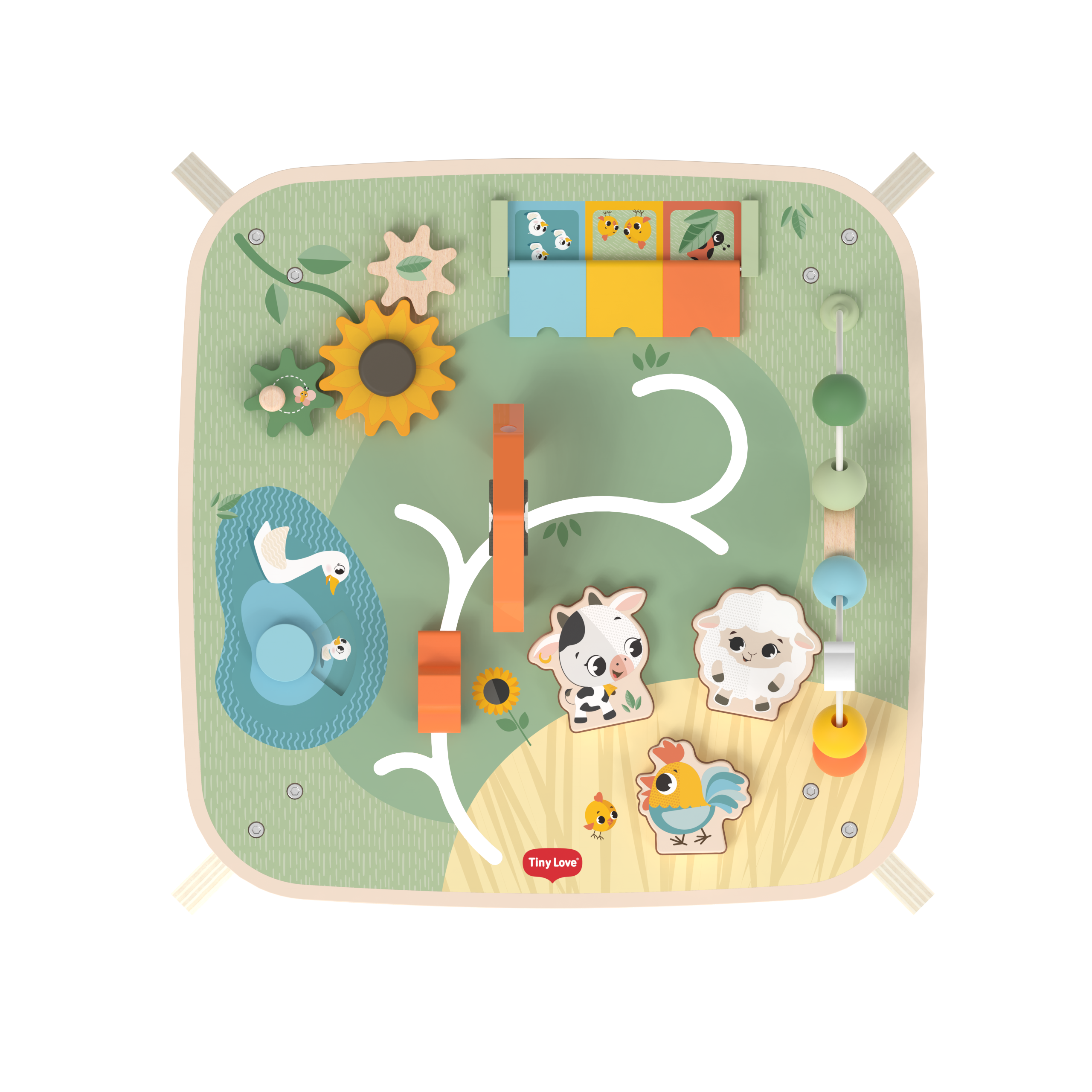 Dřevěný stolek s aktivitami Tiny Love je skvělá hračka pro malé objevitele, která nabízí spoustu možností, jak si hrát, zkoumat a učit se. Na jednom místě kombinuje různé pohyblivé prvky, vkládání a skrytá překvapení – dítě si tak přirozeně trénuje jemnou motoriku, koordinaci ruka–oko, soustředění i první logické uvažování. Stolek s krásnými motivy ze života na farmě podporuje samostatnou hru, ale zároveň je ideální i pro společné chvíle s rodiči nebo sourozenci.