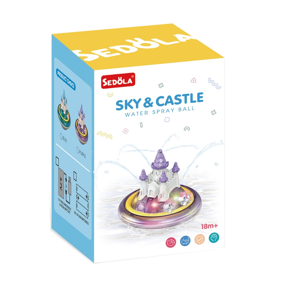 Stříkací hračka do vody Hrad fialovýPlovoucí pohádkový hradProměňte koupání na kouzelný zážitek se stříkajícím hradem do vody. Tento plovoucí zámek s poníkem rozzáří každou vanu či bazén a zaručí, že děti se na koupání budou těšit každý den. Po položení na hladinu se díky indukčnímu spínači automaticky zapne čerpadlo a voda začne stříkat směrem vzhůru, přičemž hrad jemně plave po hladině a poník se pomalu pohybuje. Uvnitř základny svítí barevná LED světla, která vytvářejí efekt kouzelné fontánky a zábavnou vizuální hru.Hračka podporuje smyslové vnímání, představivost a motoriku dětí a pomáhá spojovat koupání s hrou. Funguje na baterie, které nejsou součástí balení. Hračka je vyrobena z kvalitního, odolného plastu s hladkými hranami. Nevhodné pro děti do 3 let. Používejte pouze pod přímým dohledem dospělé osoby.