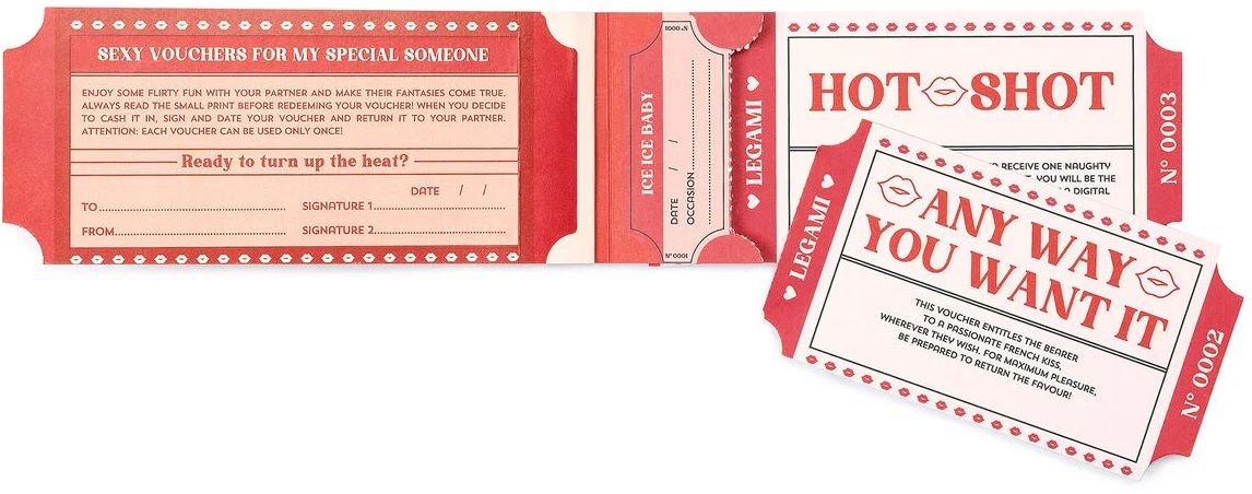 Sada 24 poukážok od Legami vám umožní dopriať svojmu partnerovi jedinečné a horúce zážitky, ktoré môže uplatniť, kedykoľvek sa mu zachce.Skutočne jedinečný valentínsky darček, na ktorý nikdy nezabudnete!