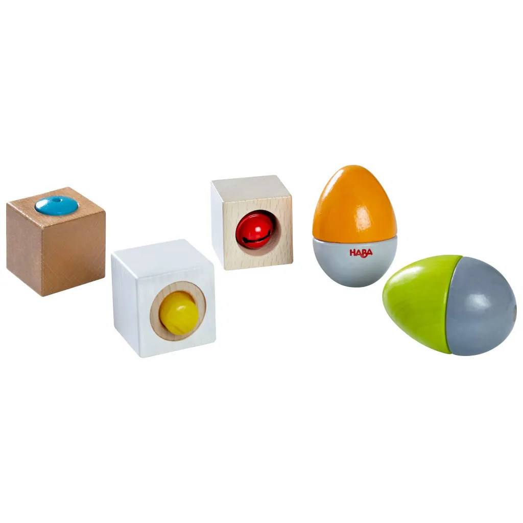 Malé deti milujú akékoľvek zvukové hračky. Vyprodukovať hudbu či hurhaj s touto súpravou je veľmi zábavné, pretože kocky aj vajíčka možno využiť na vytvorenie širokej škály zvukov. Deti sa tak hravou formou zoznámia so svetom zvukov a hudby. Kocky aj vajíčka vytvárajú skvelé akustické efekty – hrkanie, klopkanie, cvrlikanie alebo cinkanie.